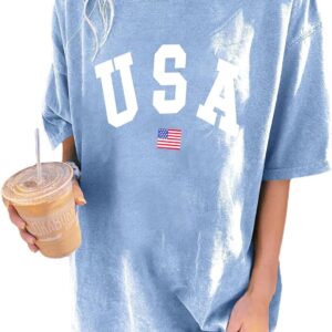 Remidoo Womens Casual Round Neck Short Sleeve Oversized T Shirt Graphic Tee Tops