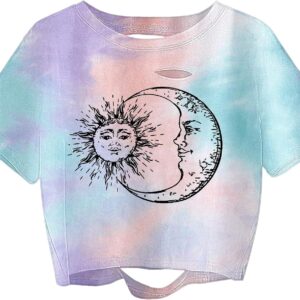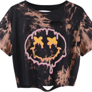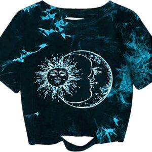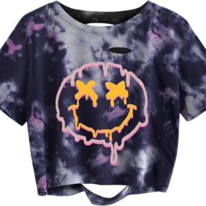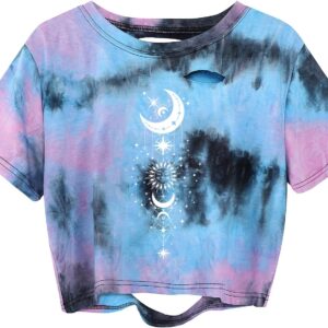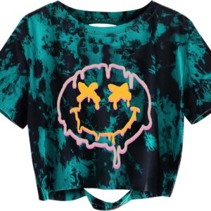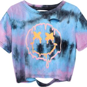 Remidoo Women’s Casual Short Sleeve Graphic Print Tie Dye Crop Top T Shirt