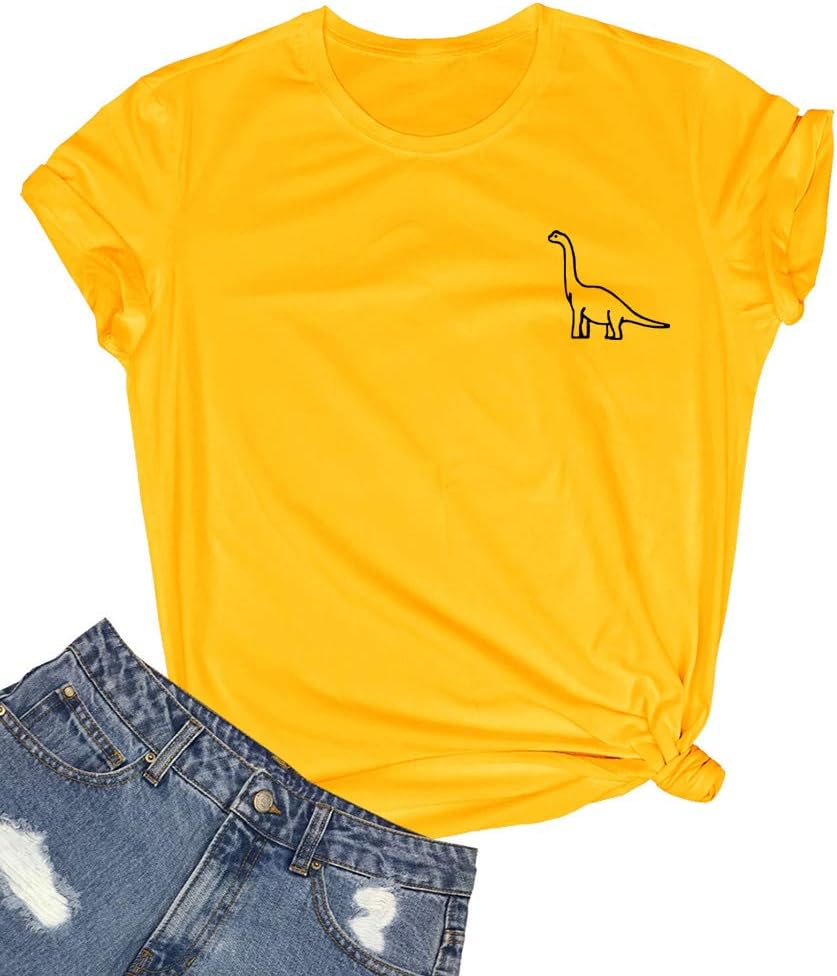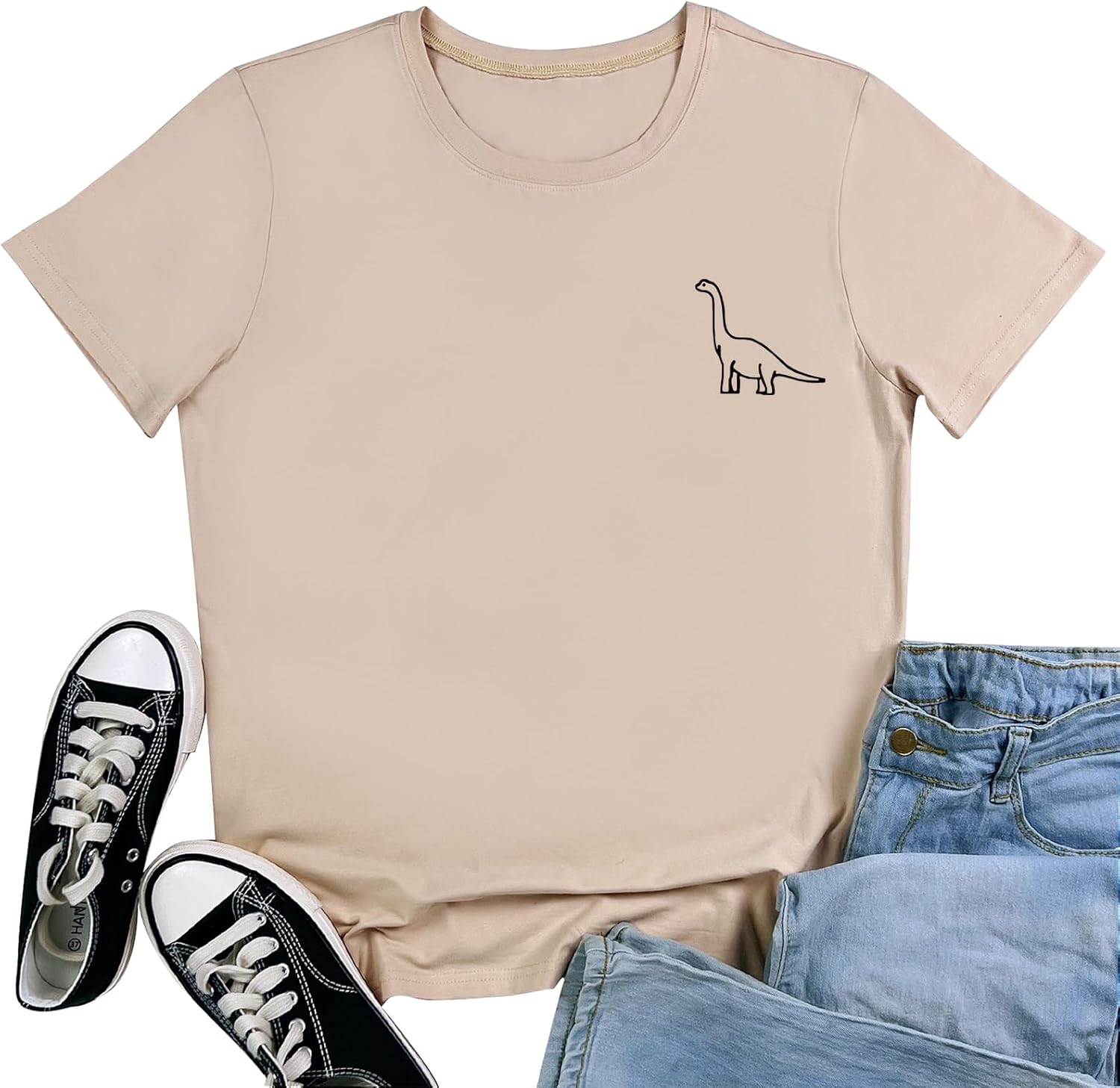 ROSEPARK Women Cute Dinosaur Graphic T-Shirts Teen Girls Funny Tees
