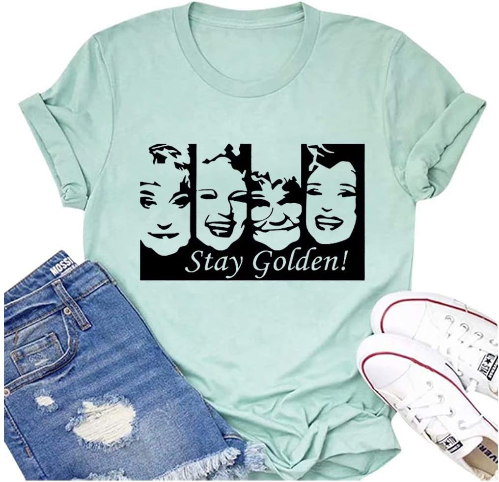 Stay Golden Tshirt Women Funny Cute Golden Girls Shirt Casual Short Sleeve Letter Print Tee Tops Vintage Graphic Tee