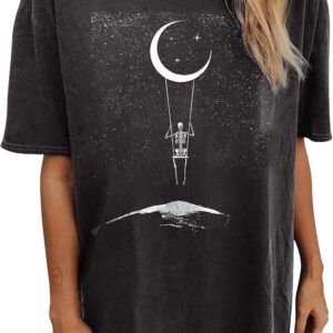 Summer Y2k Tops for Womens, Casual Vintage Short Sleeve T-Shirt, Girls Oversize Loose Round Neck Elastic Tee