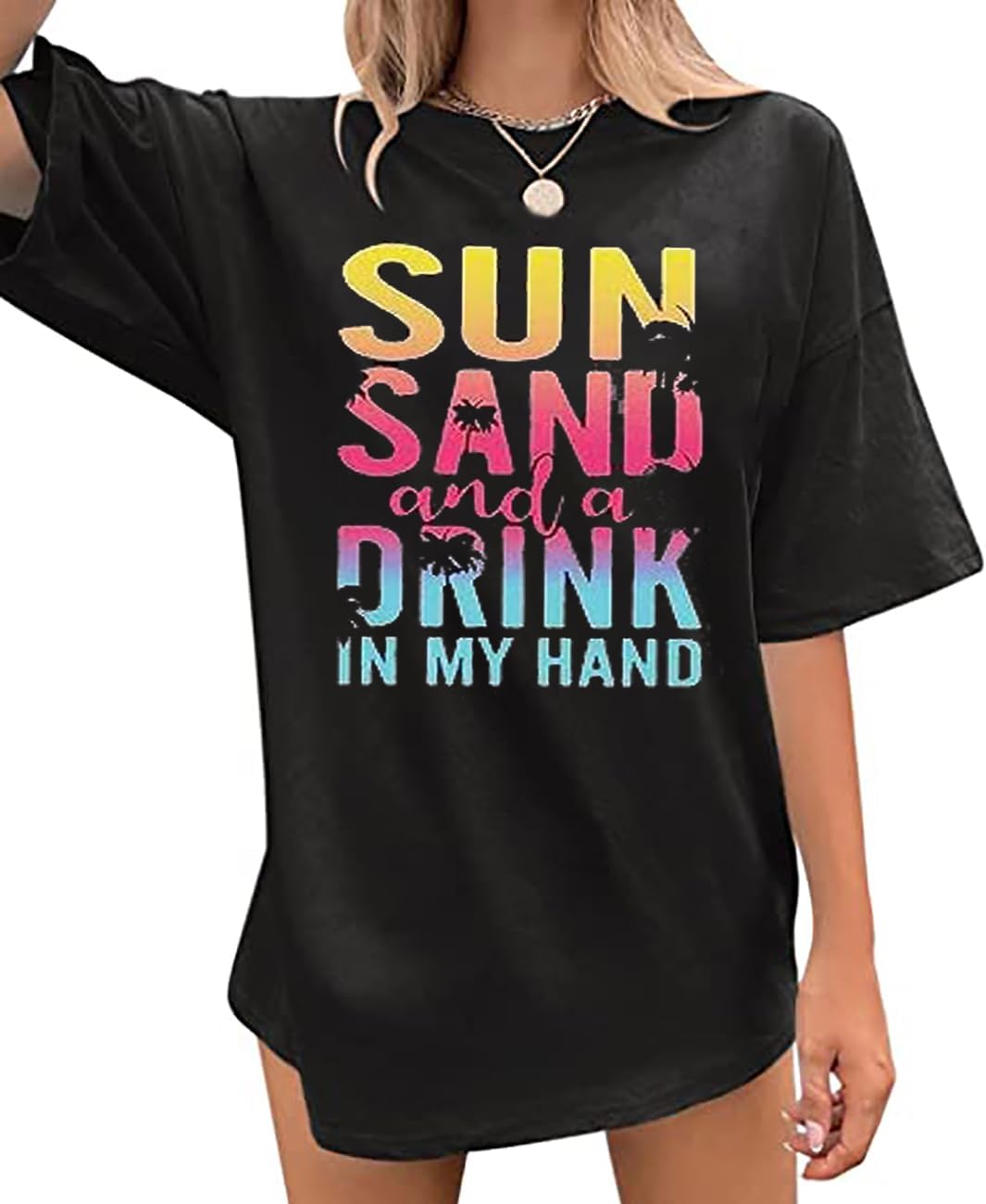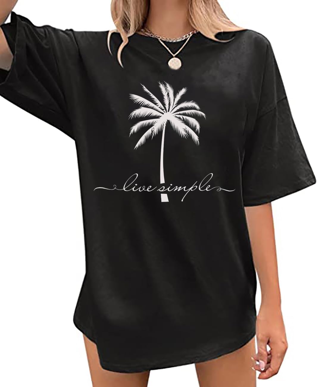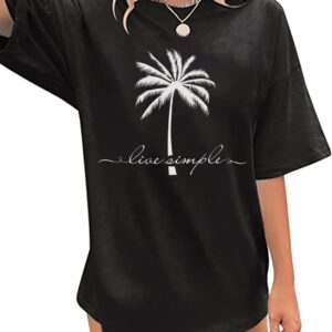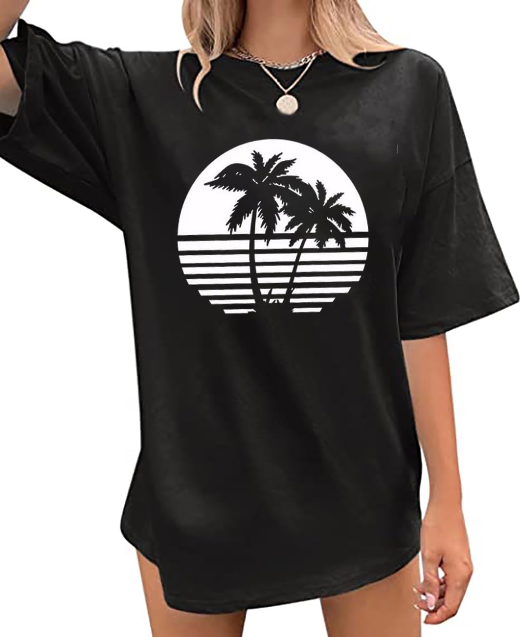 Women’s Oversized Summer Beach Vacation T-Shirt Casual Short Sleeve Loose Fit Tee Tops Beach Coconut Tree Holiday Shirt Blouse
