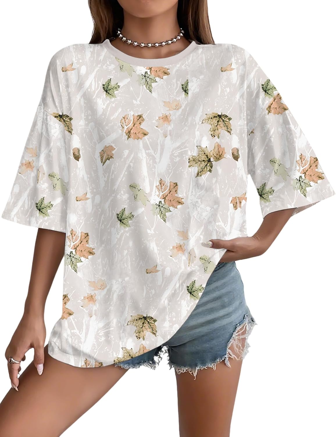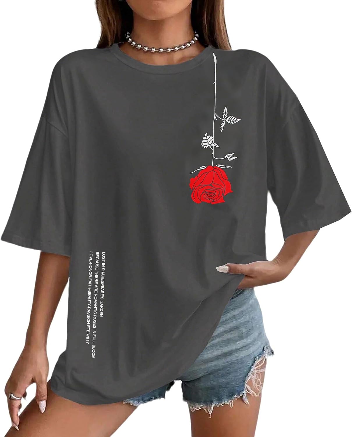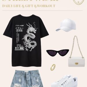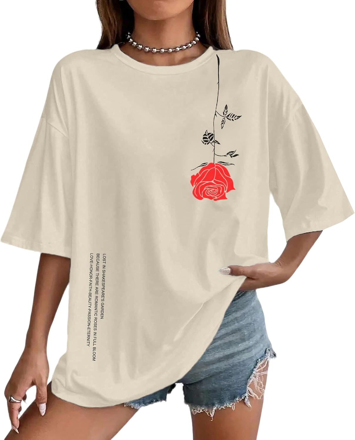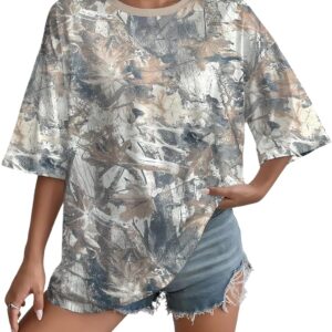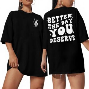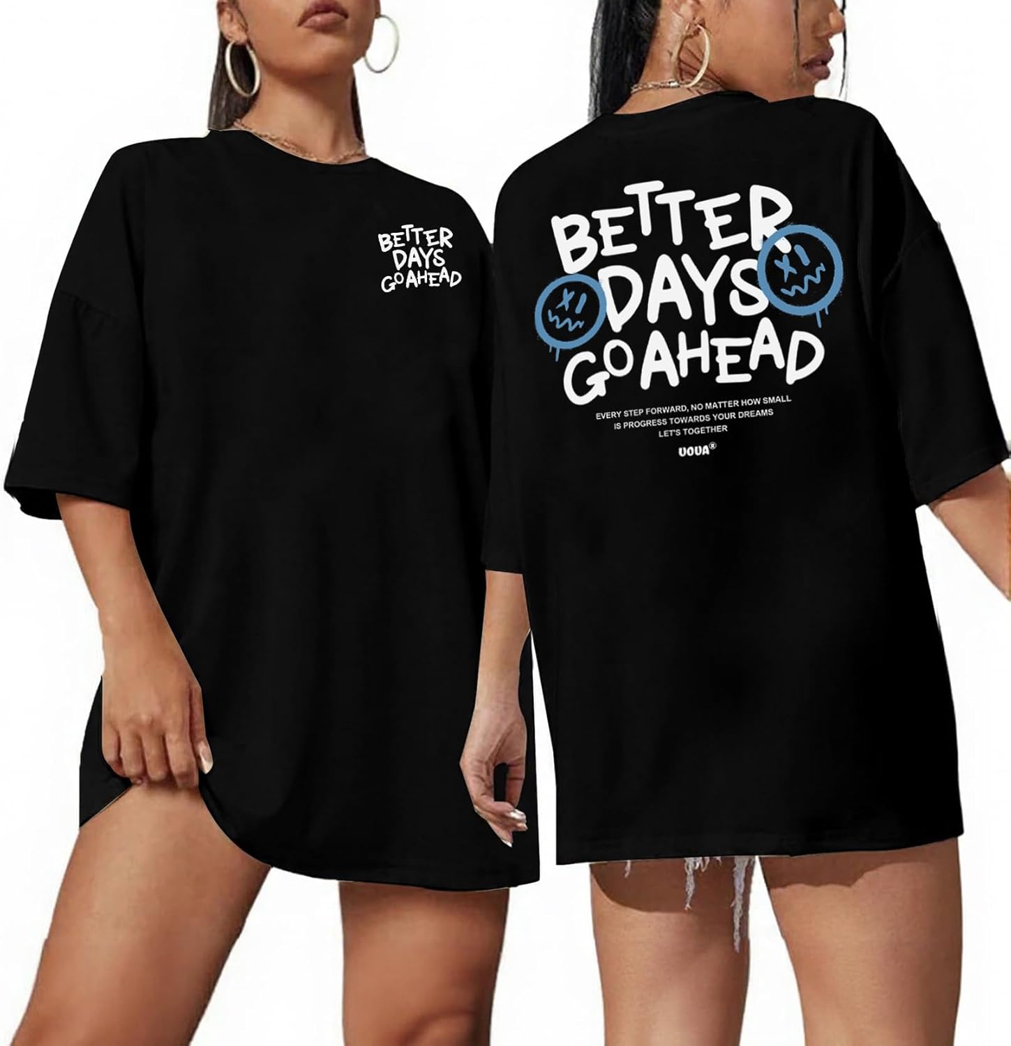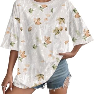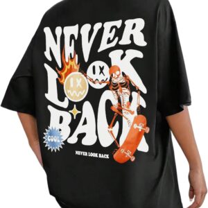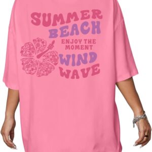 UOUA Women Oversized Graphic T-Shirt Casual Cotton Tees Printed Summer Tops