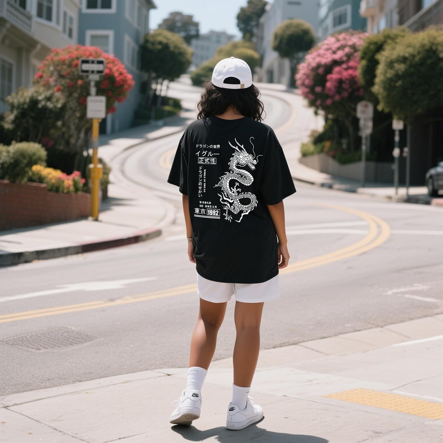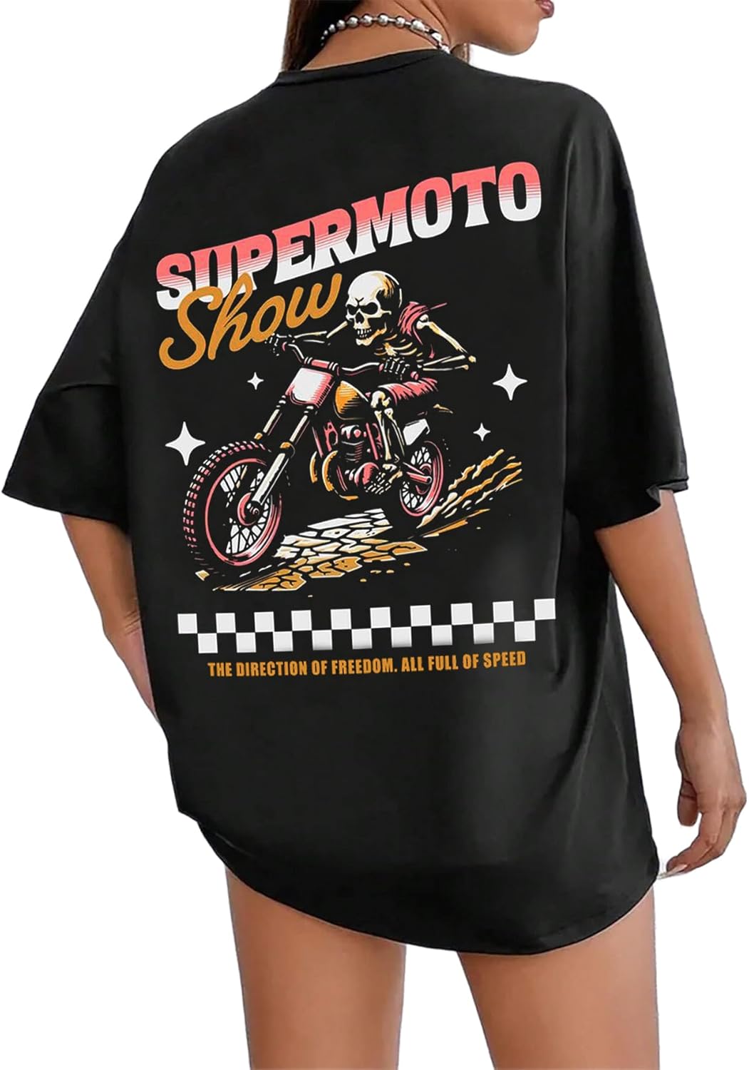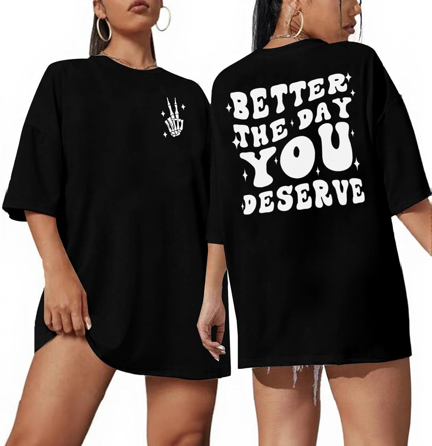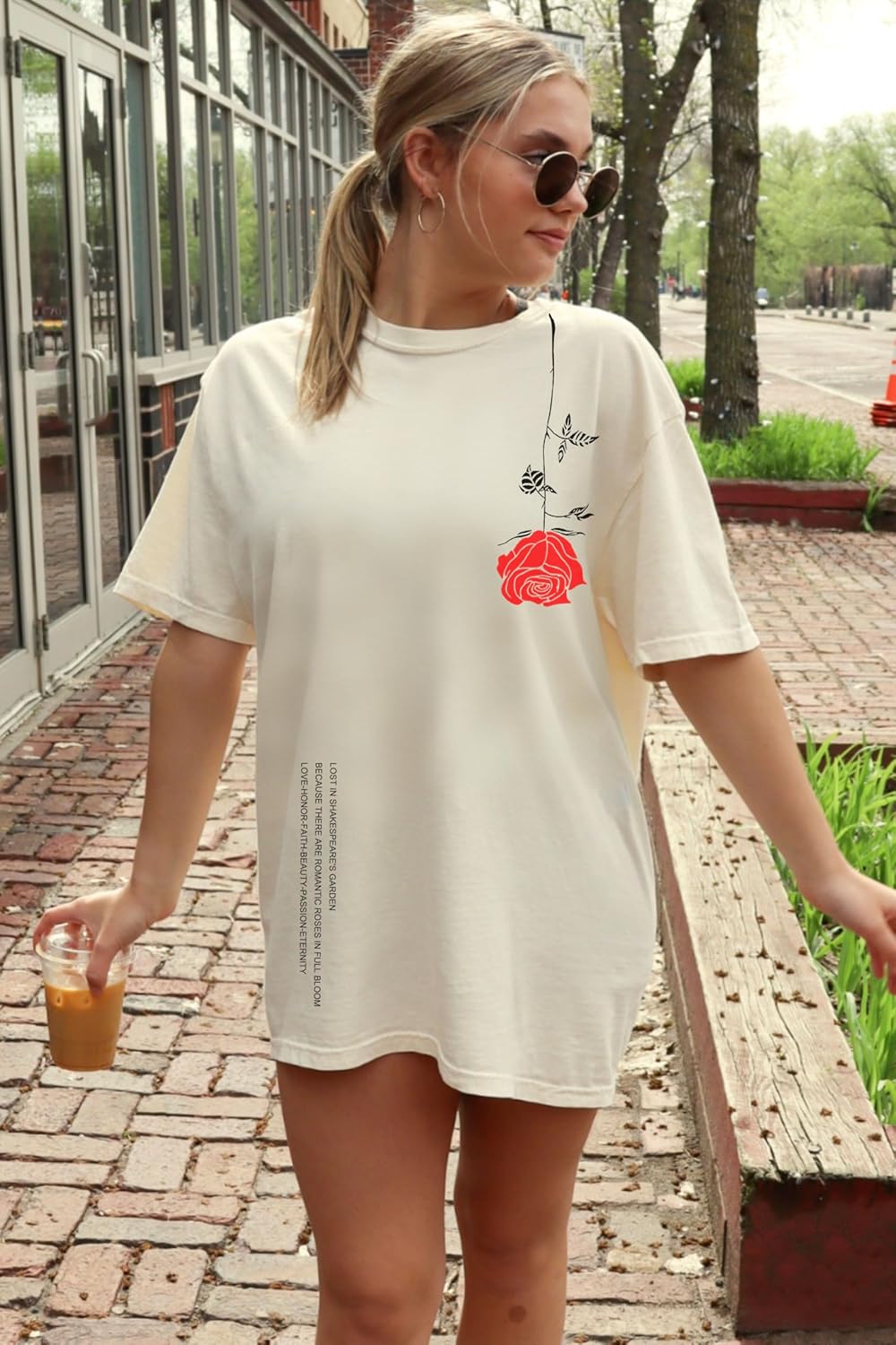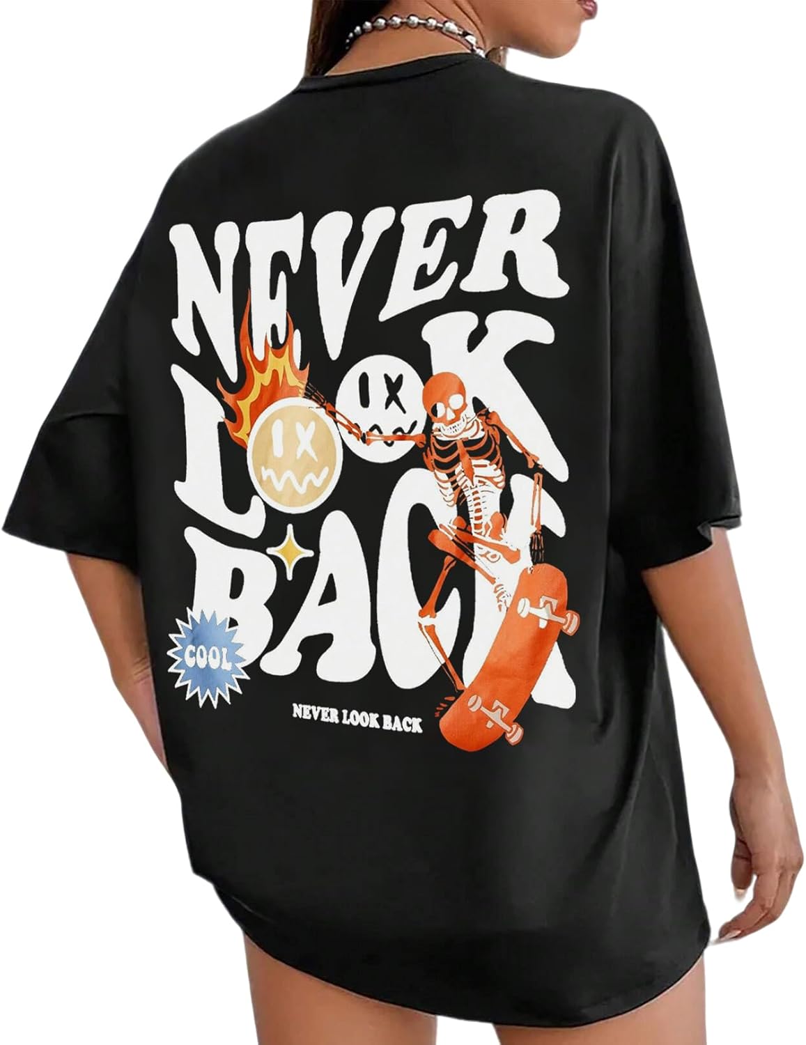 UOUA Women Oversized Graphic T-Shirt Casual Cotton Tees Printed Summer Tops