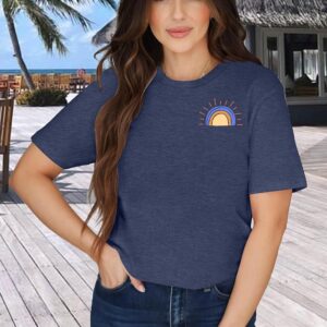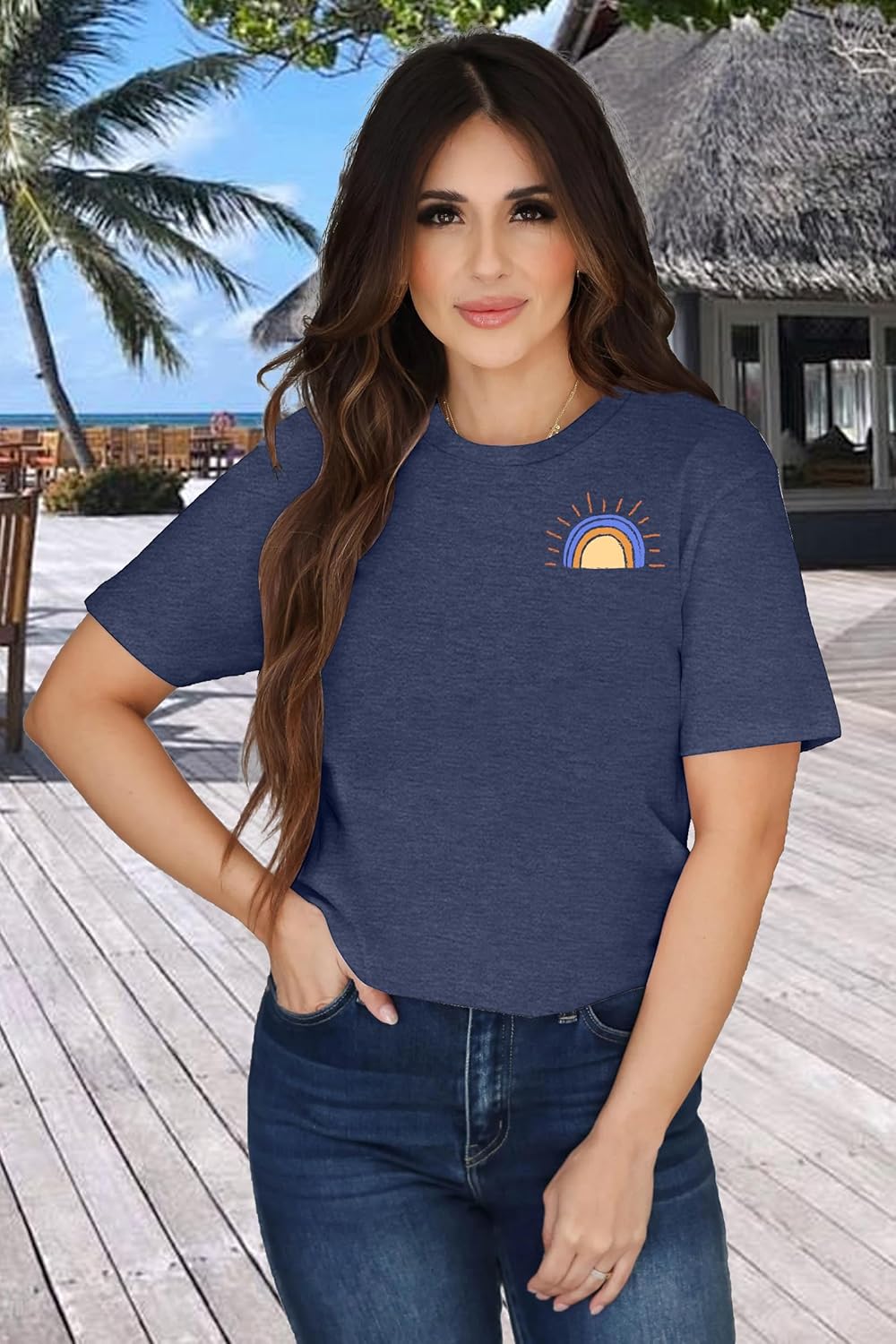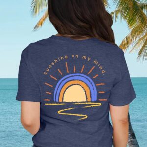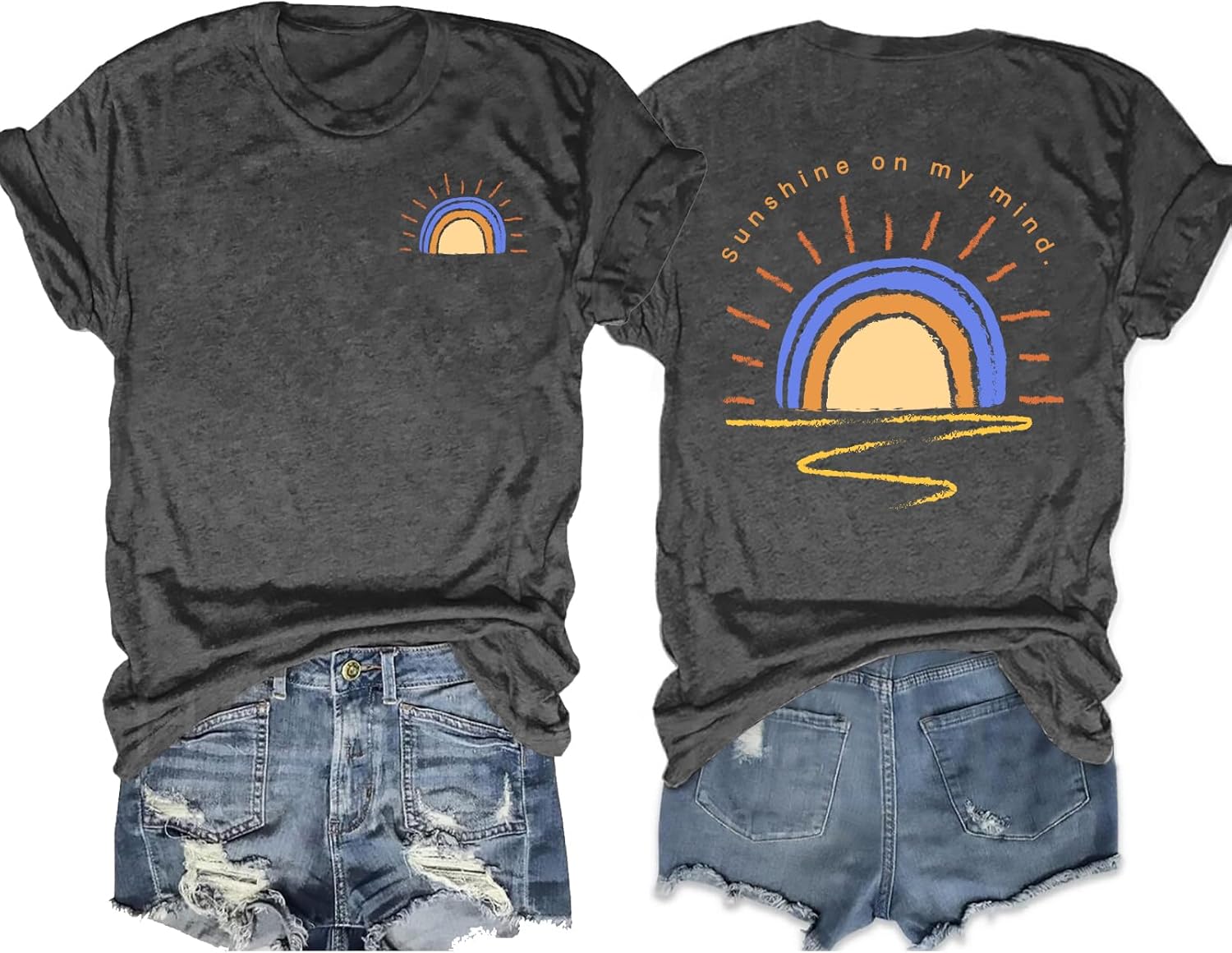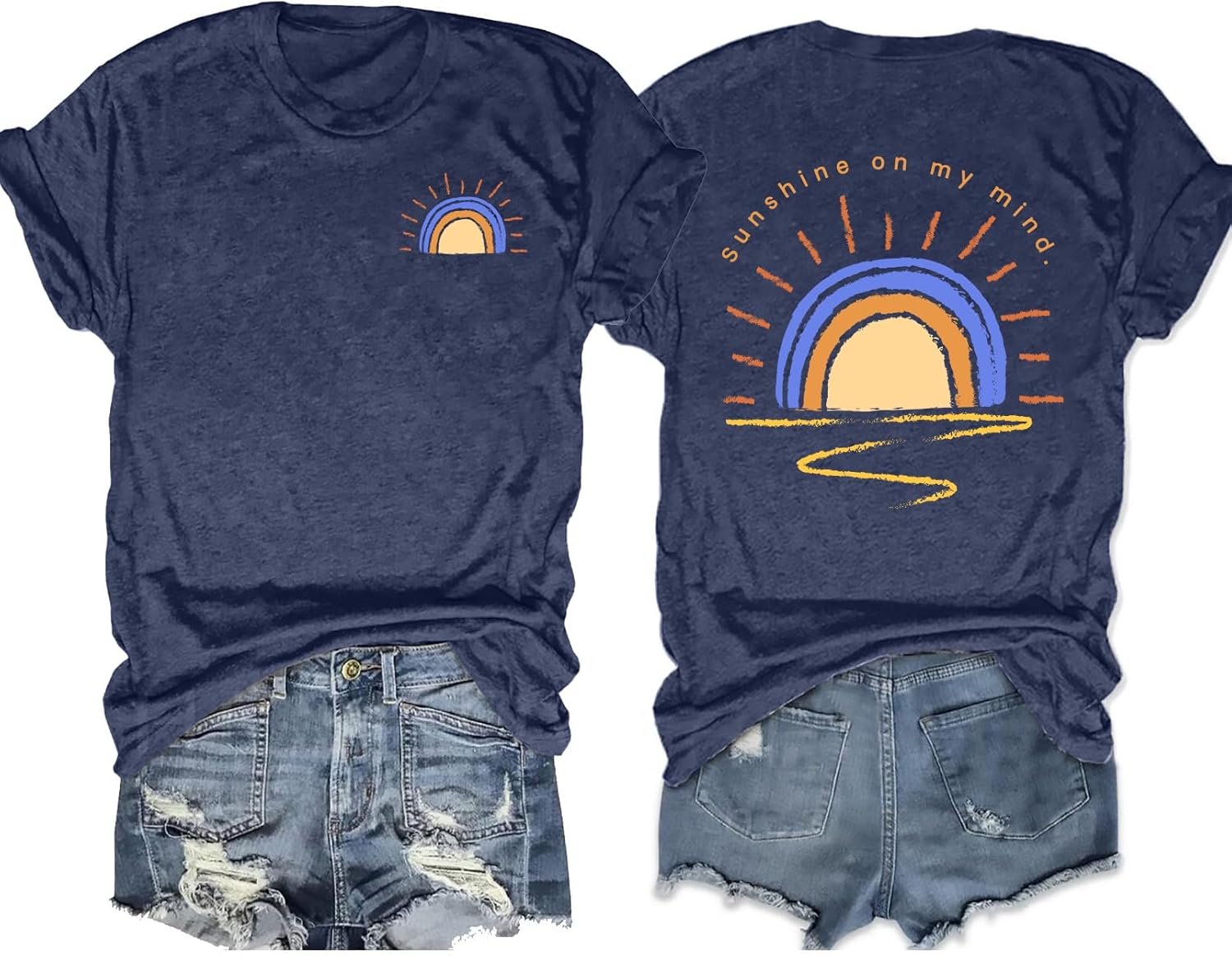 Women Retro Sun Shine on My Mind T-Shirt Summer Sunset Sunrise Shirts Hawaiian Beach T Shirt Vintage Sunrise Tshirt Vacation Casual Short Sleeve Tops