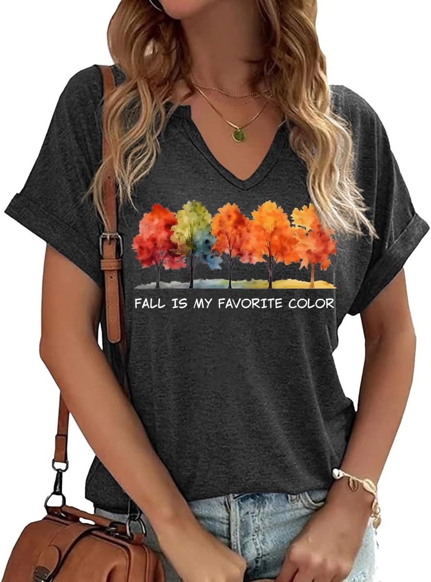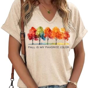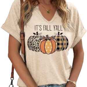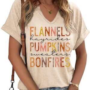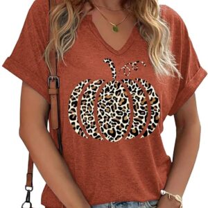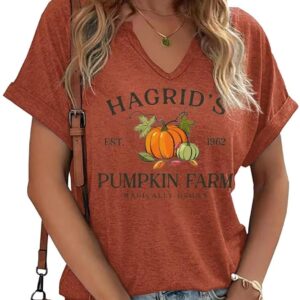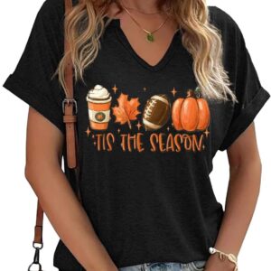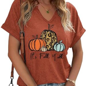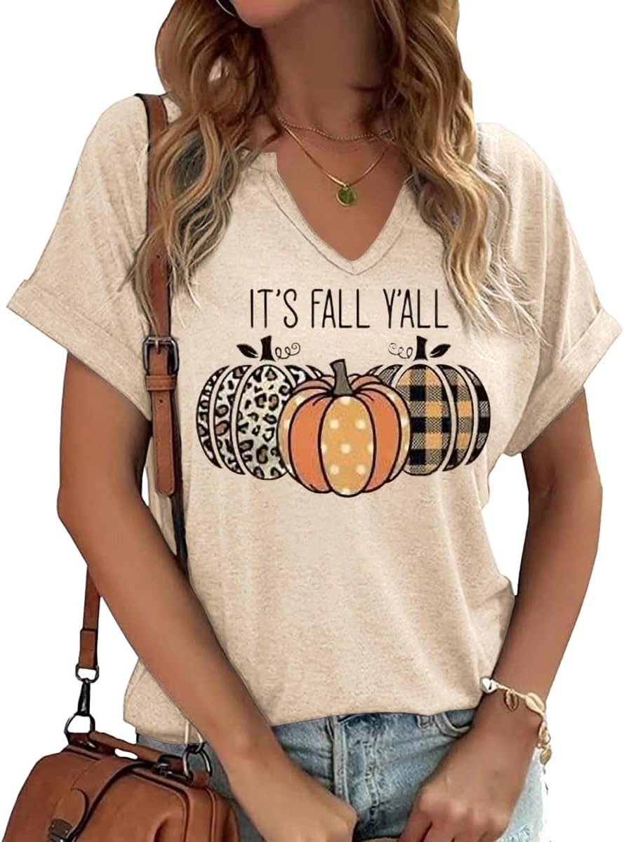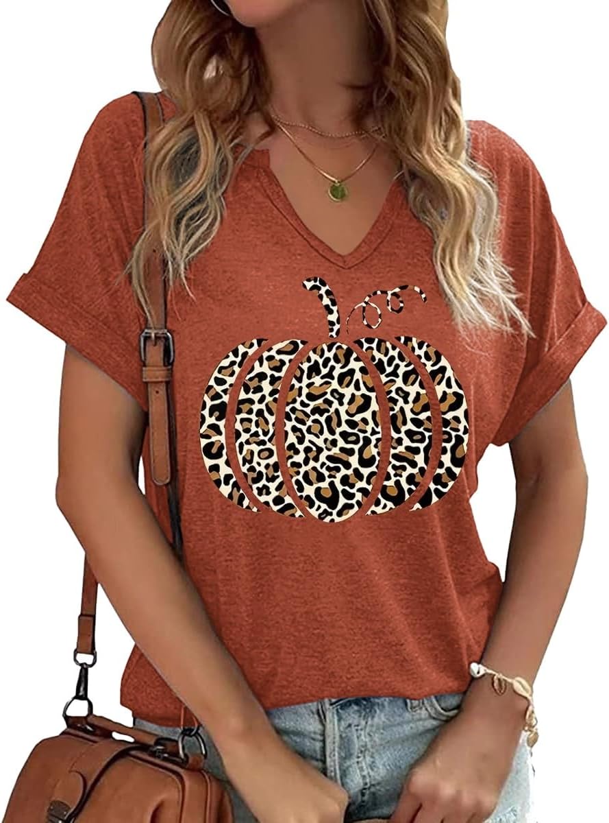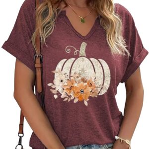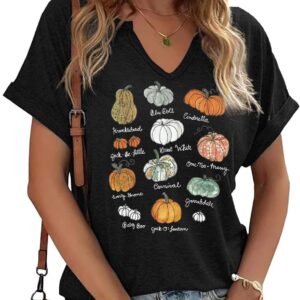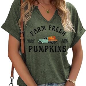 Fall Pumpkin Graphic V Neck Tee Tops