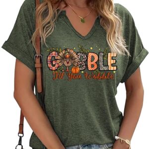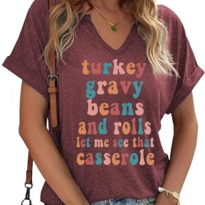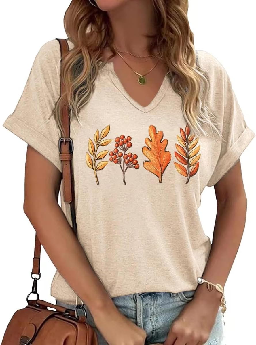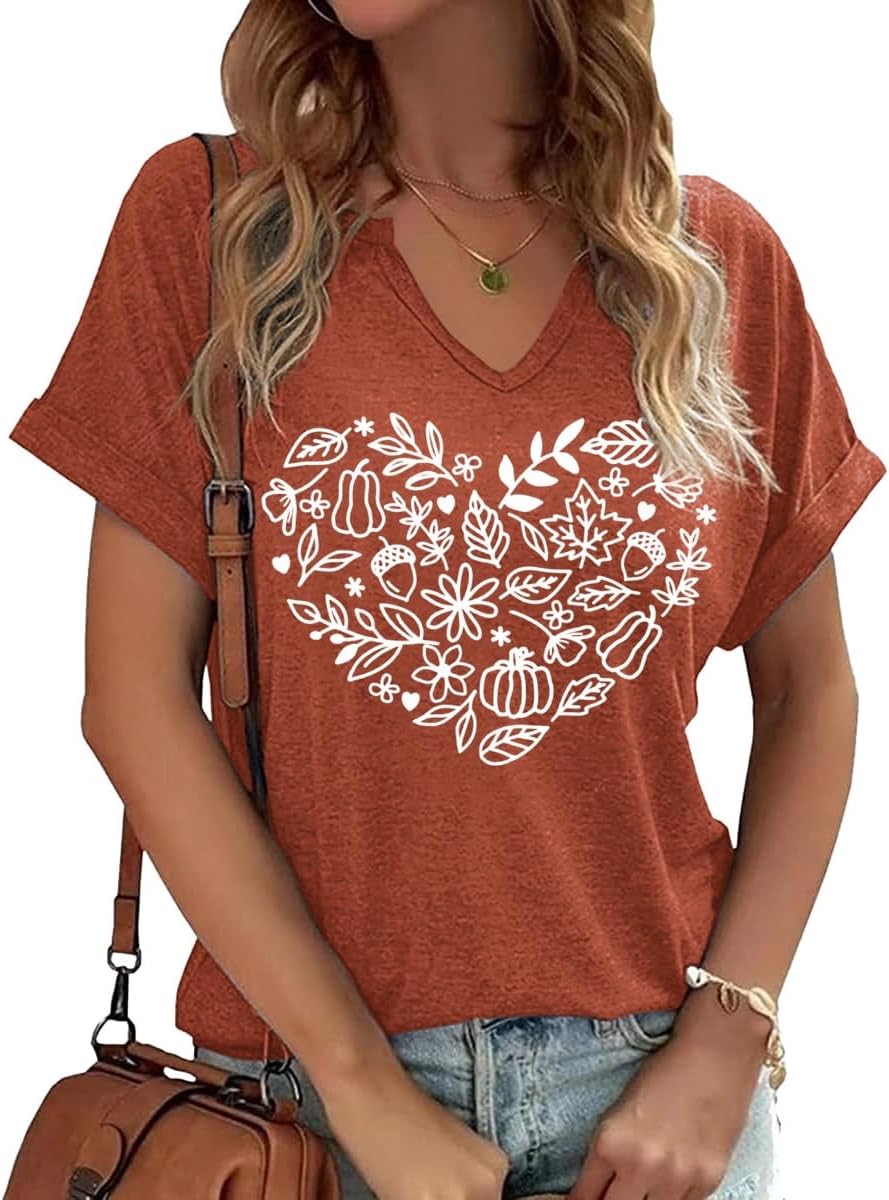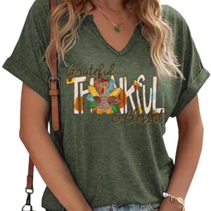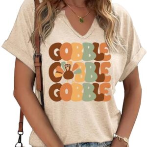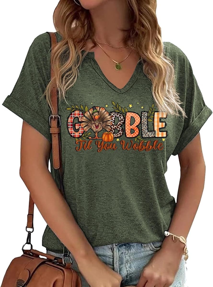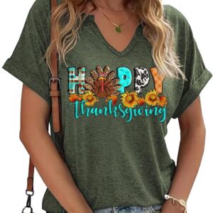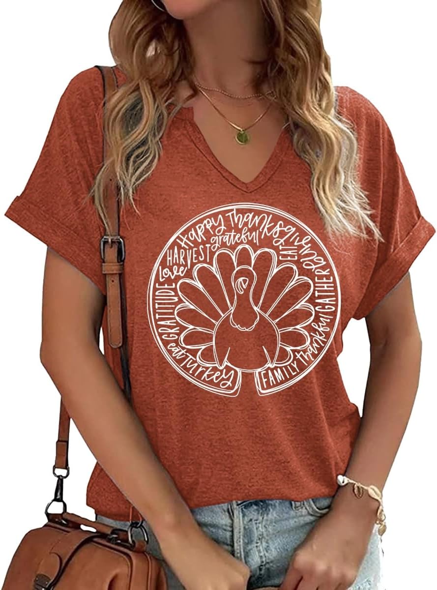 Thanksgiving Graphic V Neck Tees Blouse