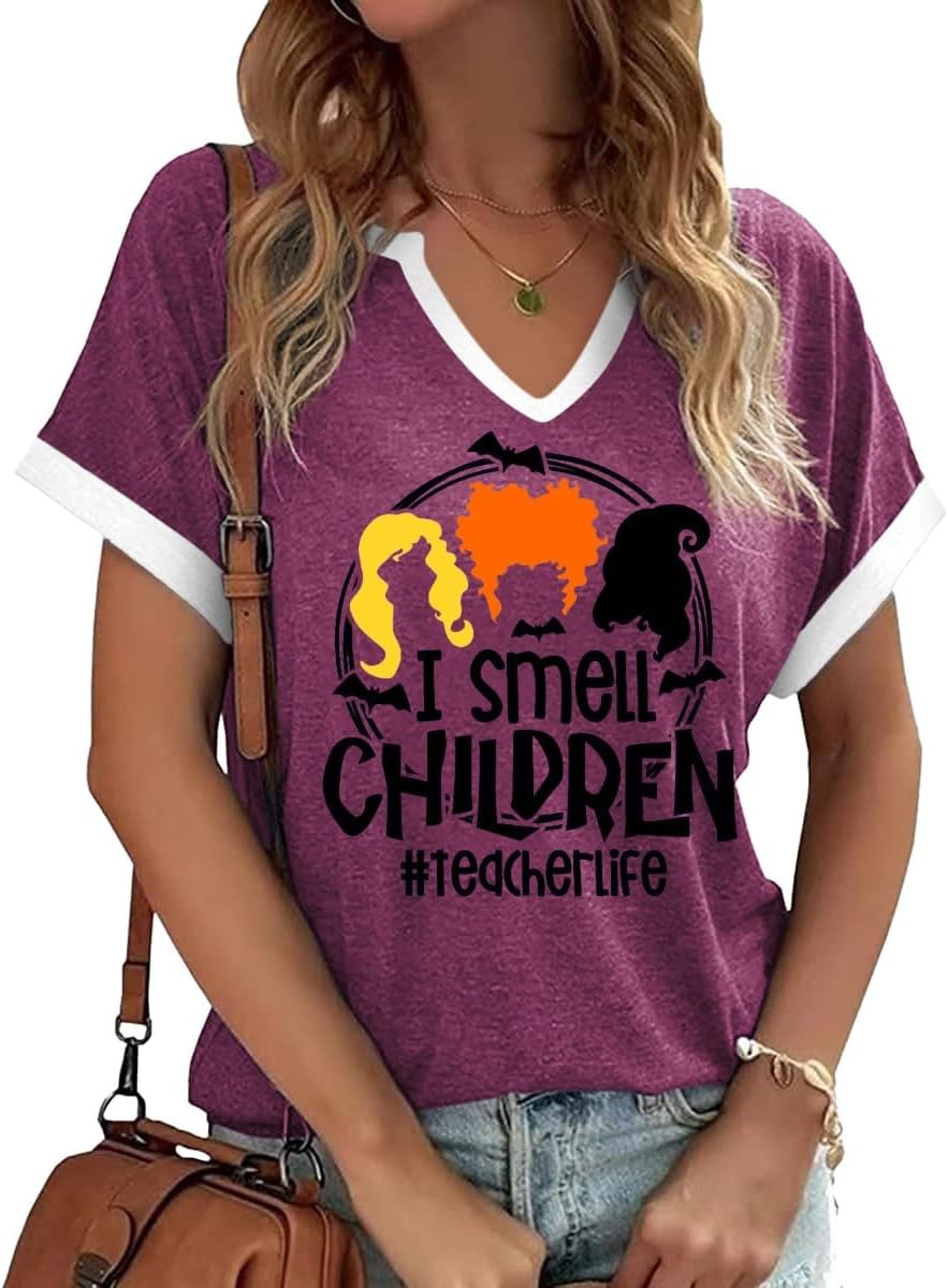 Halloween I Smell Children Graphic V Neck Tee