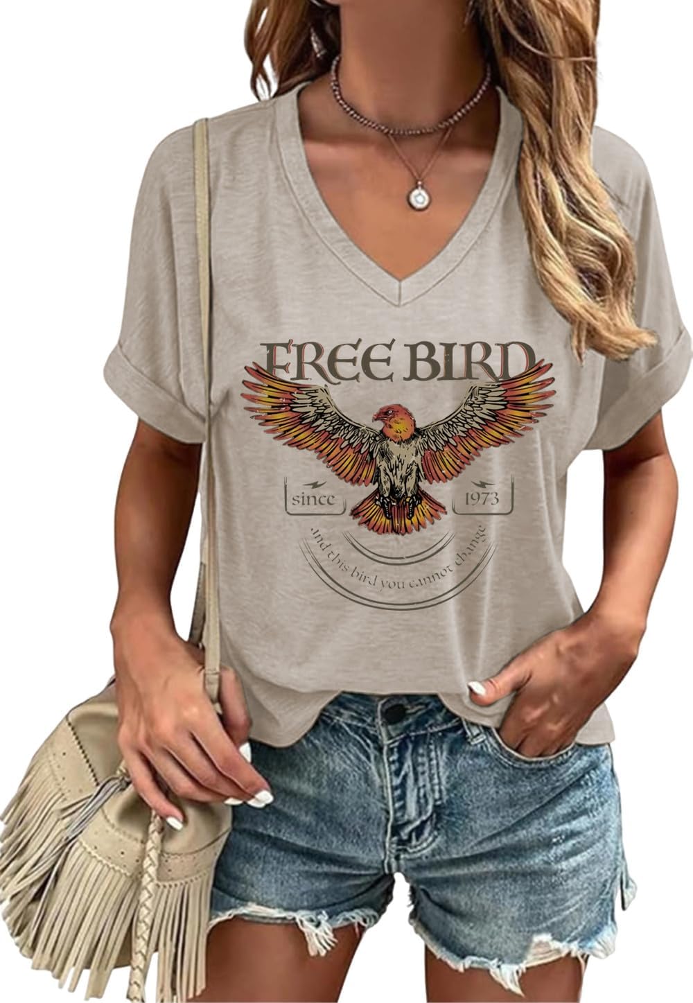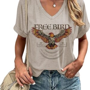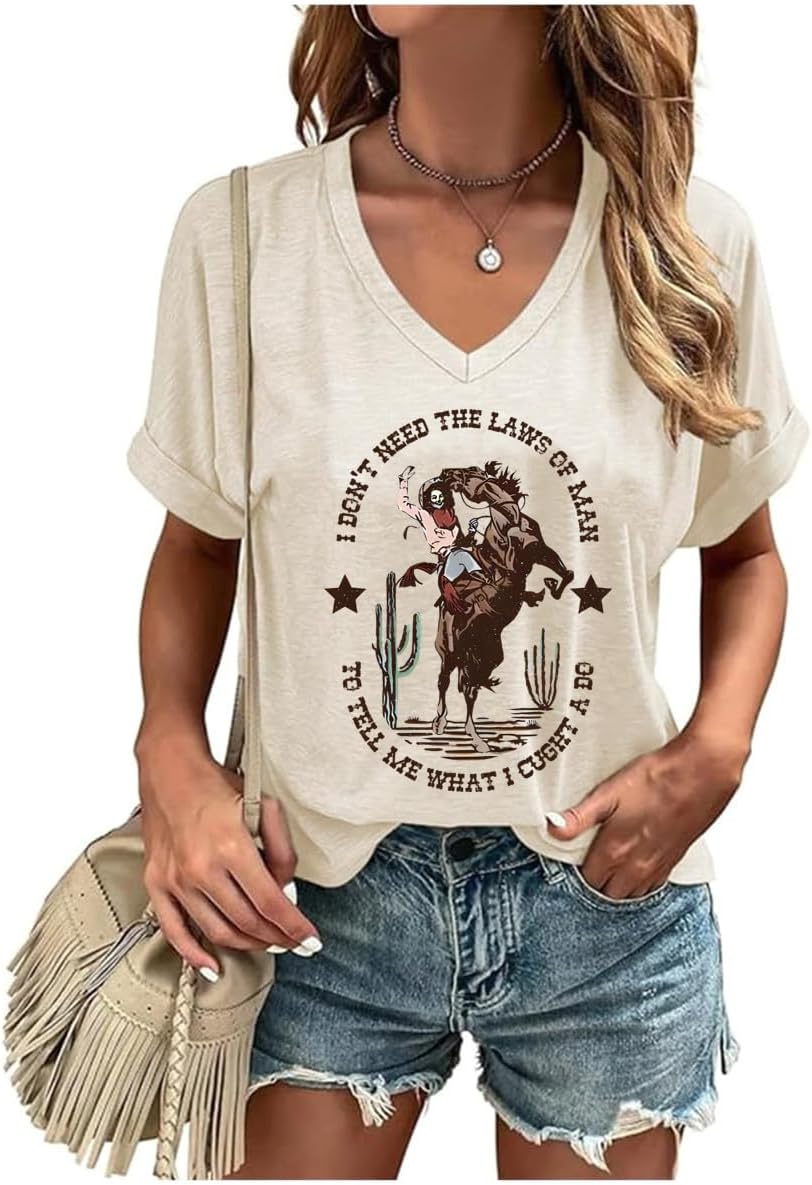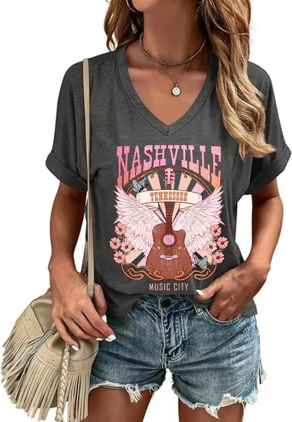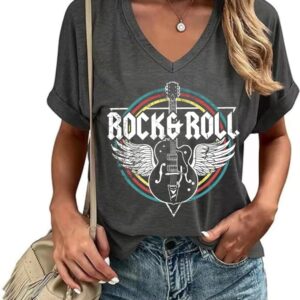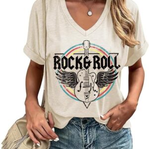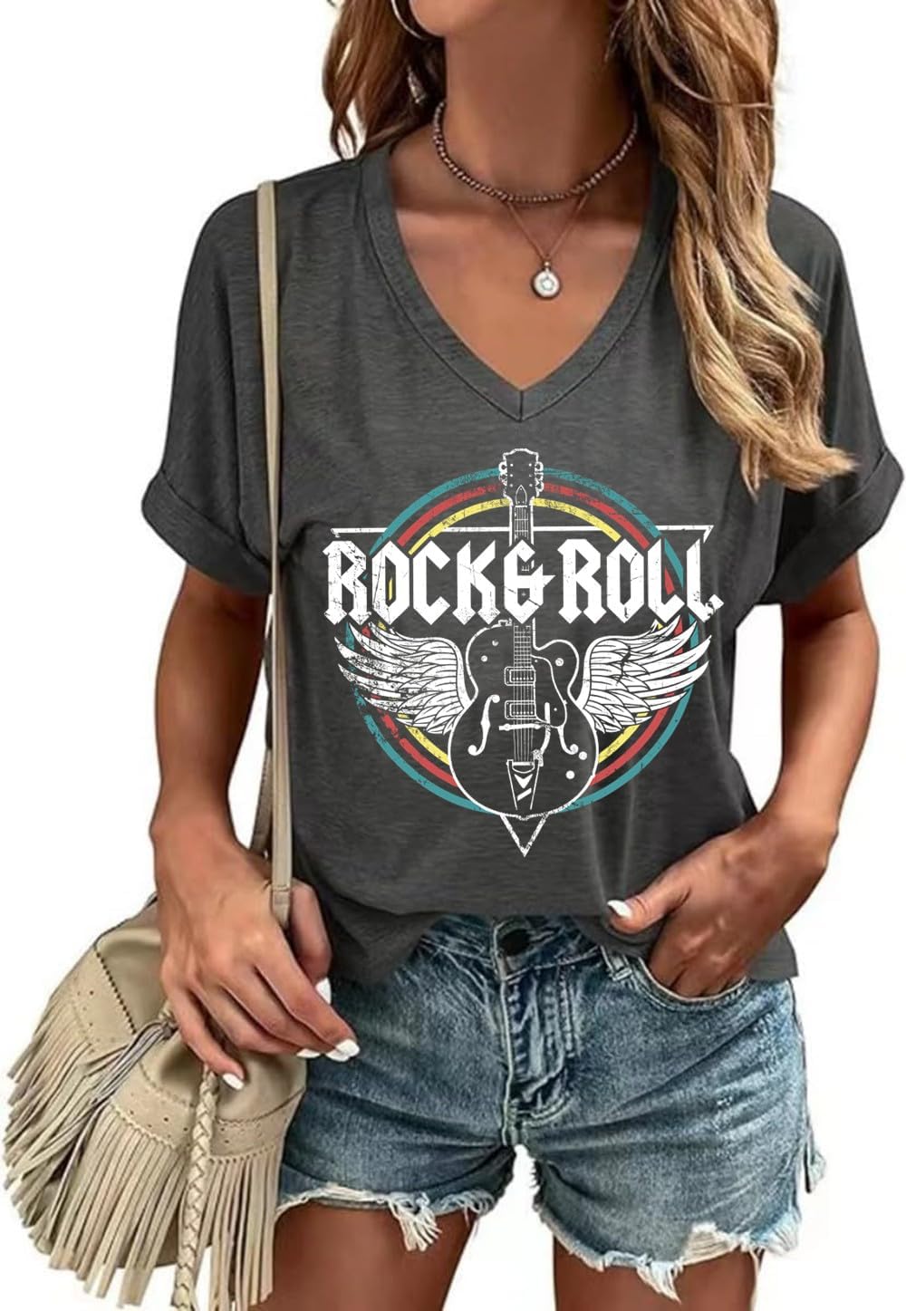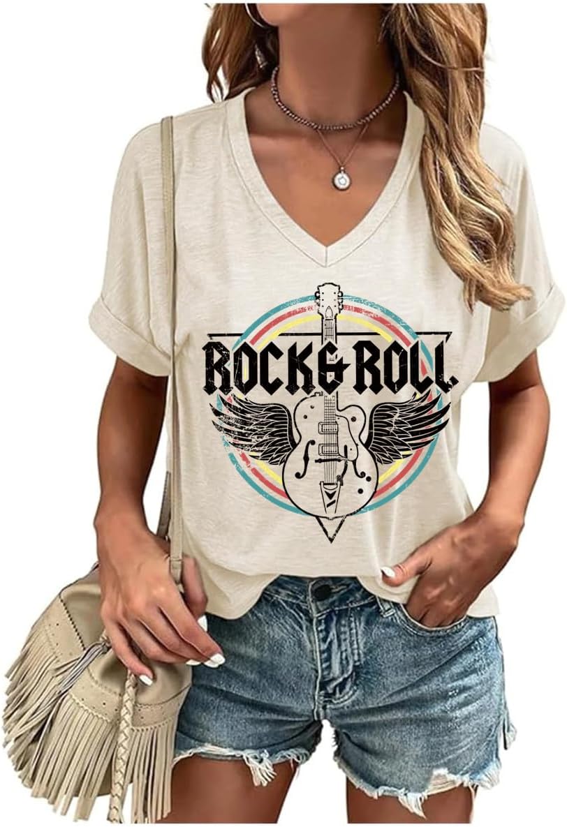 Women Rock Band T-Shirts Vintage Rock and Roll Country Music Shirt Funny Concert Outfit V-Neck Vacation Tops