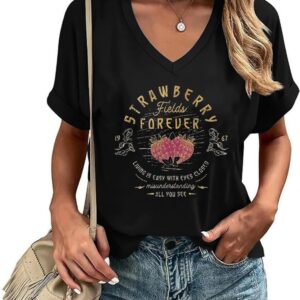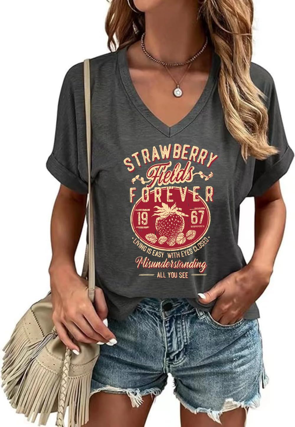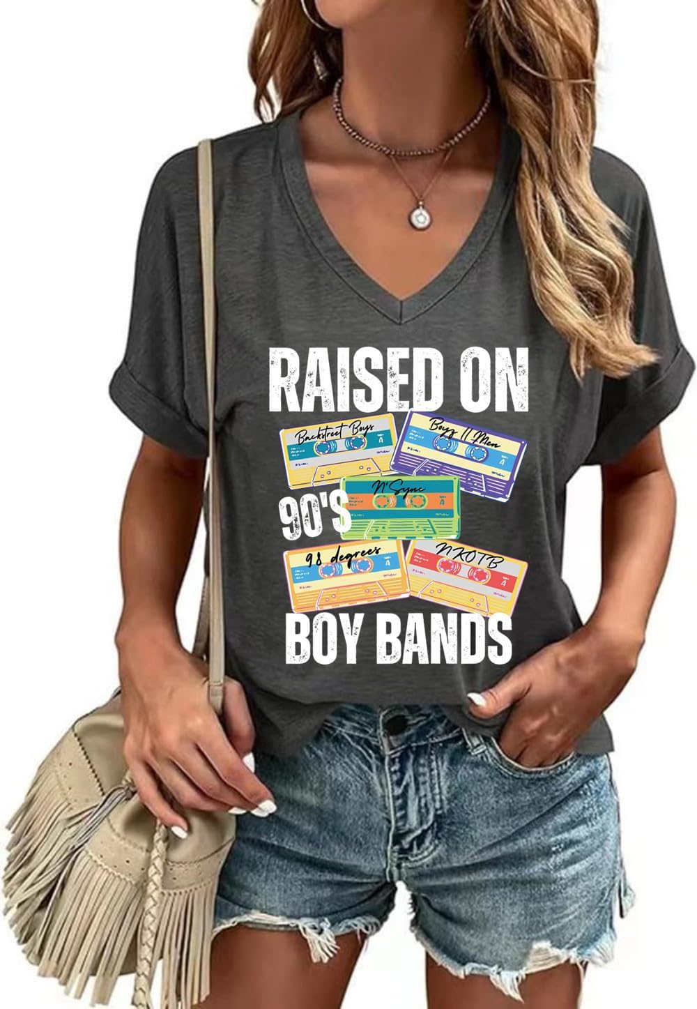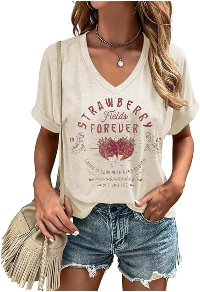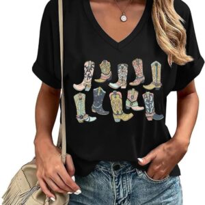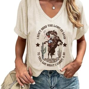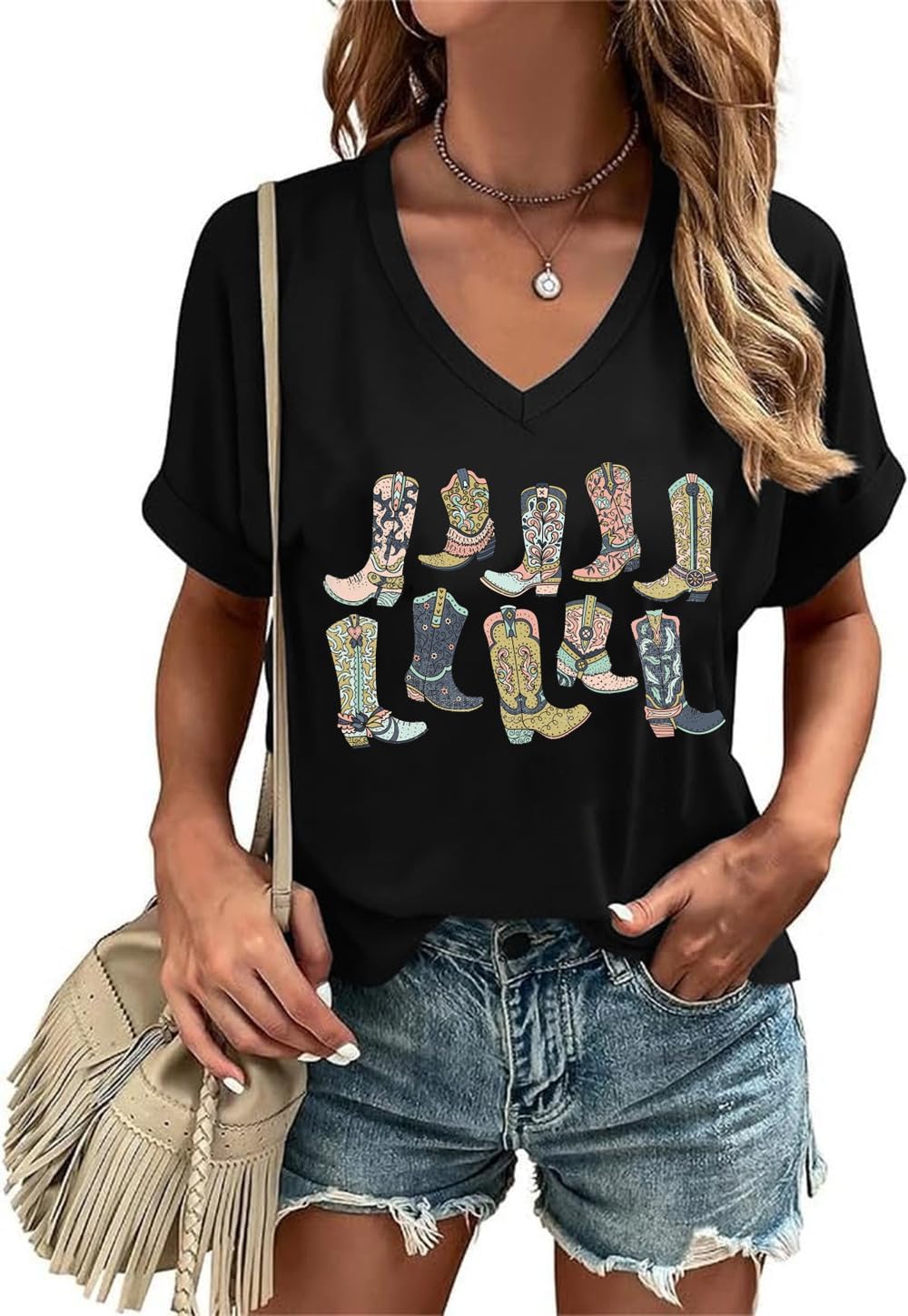 Women Rock Band T-Shirts Vintage Rock and Roll Country Music Shirt Funny Concert Outfit V-Neck Vacation Tops