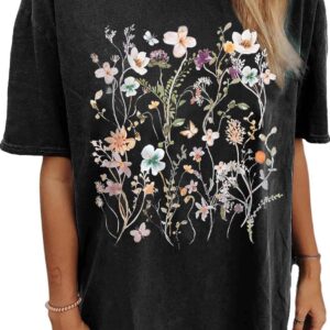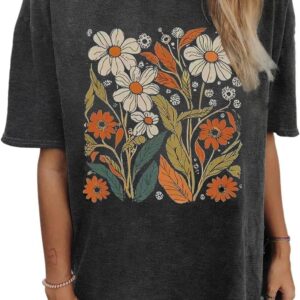 - Feature:This oversized flower graphic shirts for women, cute botanical t-shirt, summer wildflowers lover tee, Boho floral graphic, cute casual round neck, vintage floral graphic tees, nashville music city t-shirt,country music shirts,hawaiian tshirt,vacation shirt,unique design makes it popular among women and girls.