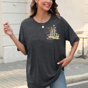 Womens Oversized Tshirts Skeleton Flowers Funny Graphic Loose Shirts Tops