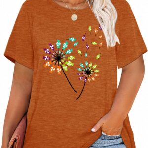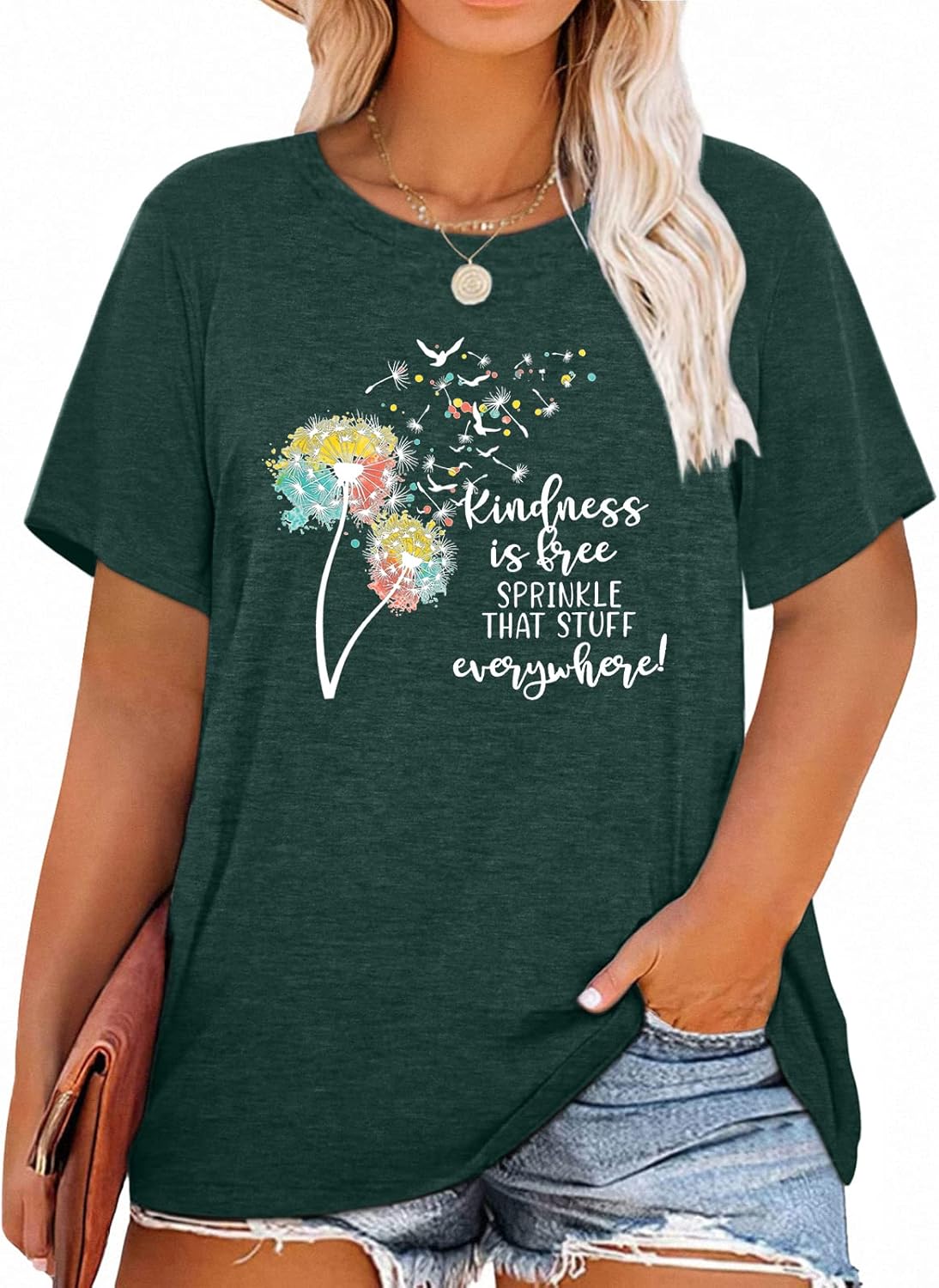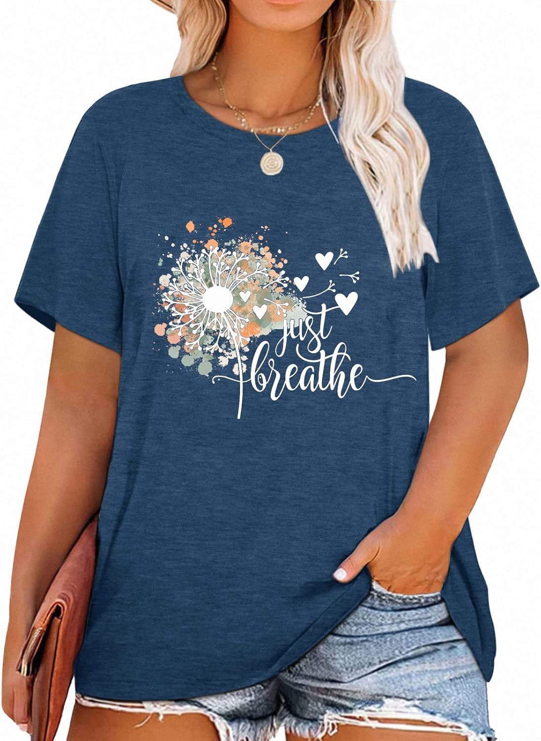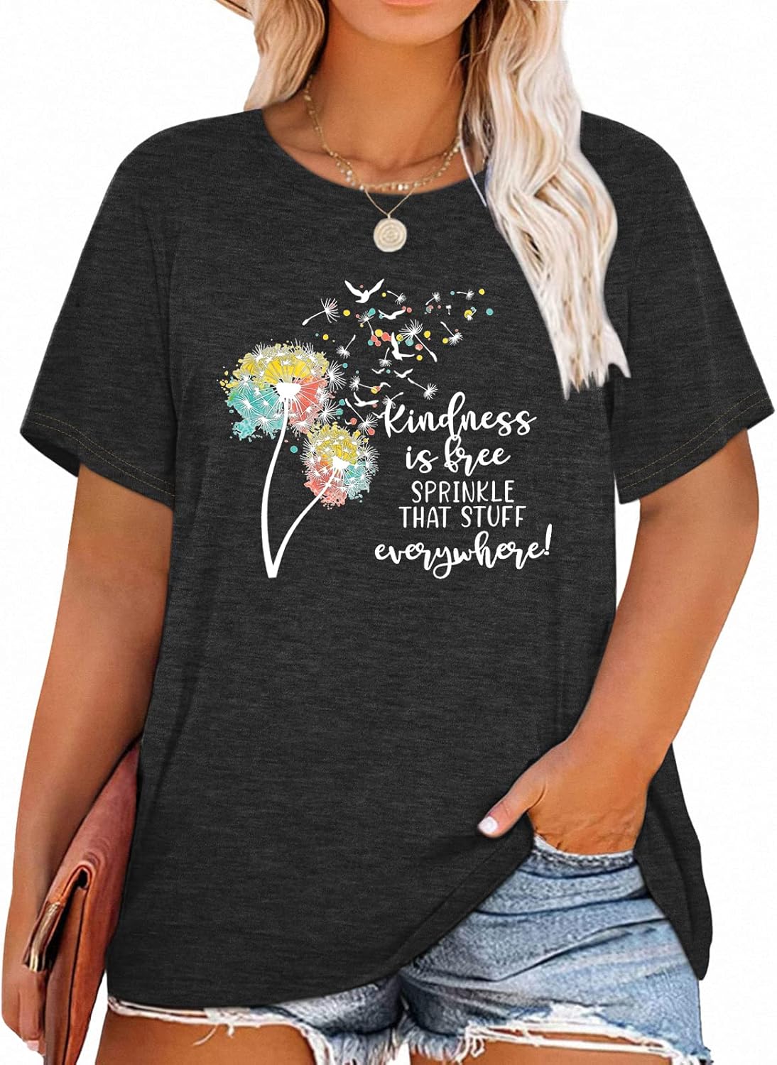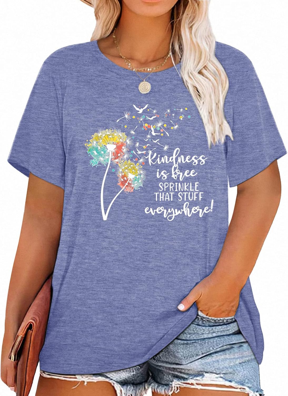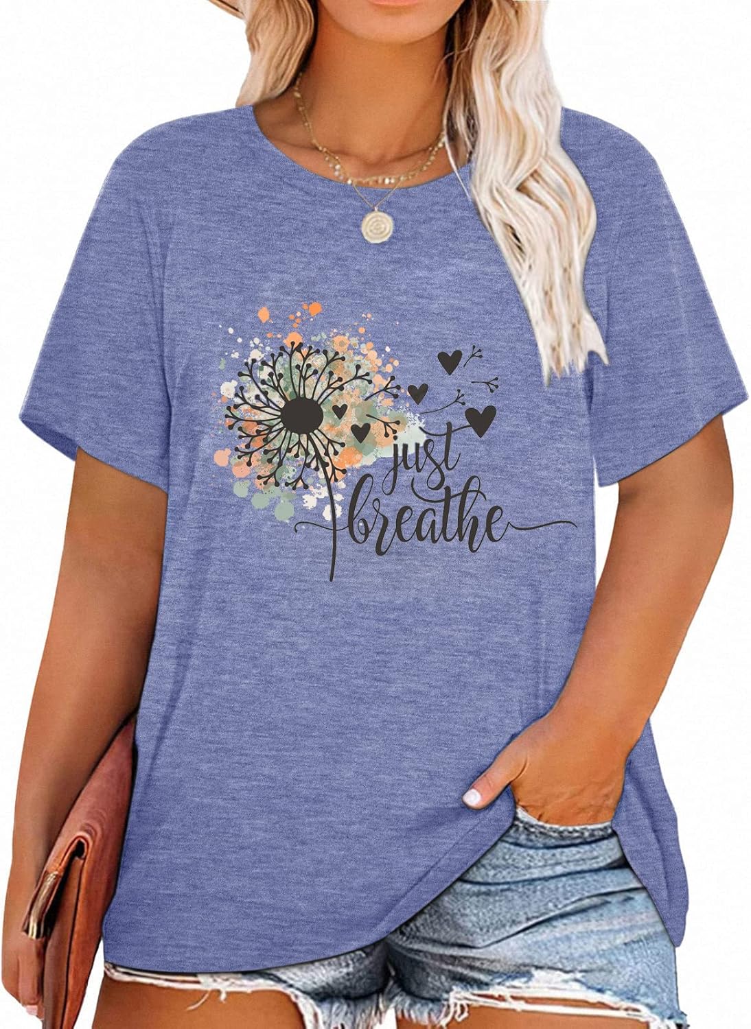 Womens Plus Size Dandelion Print Tshirt Cute Graphic Floral Tees Short Sleeve Summer Blessed Tee Tops