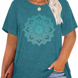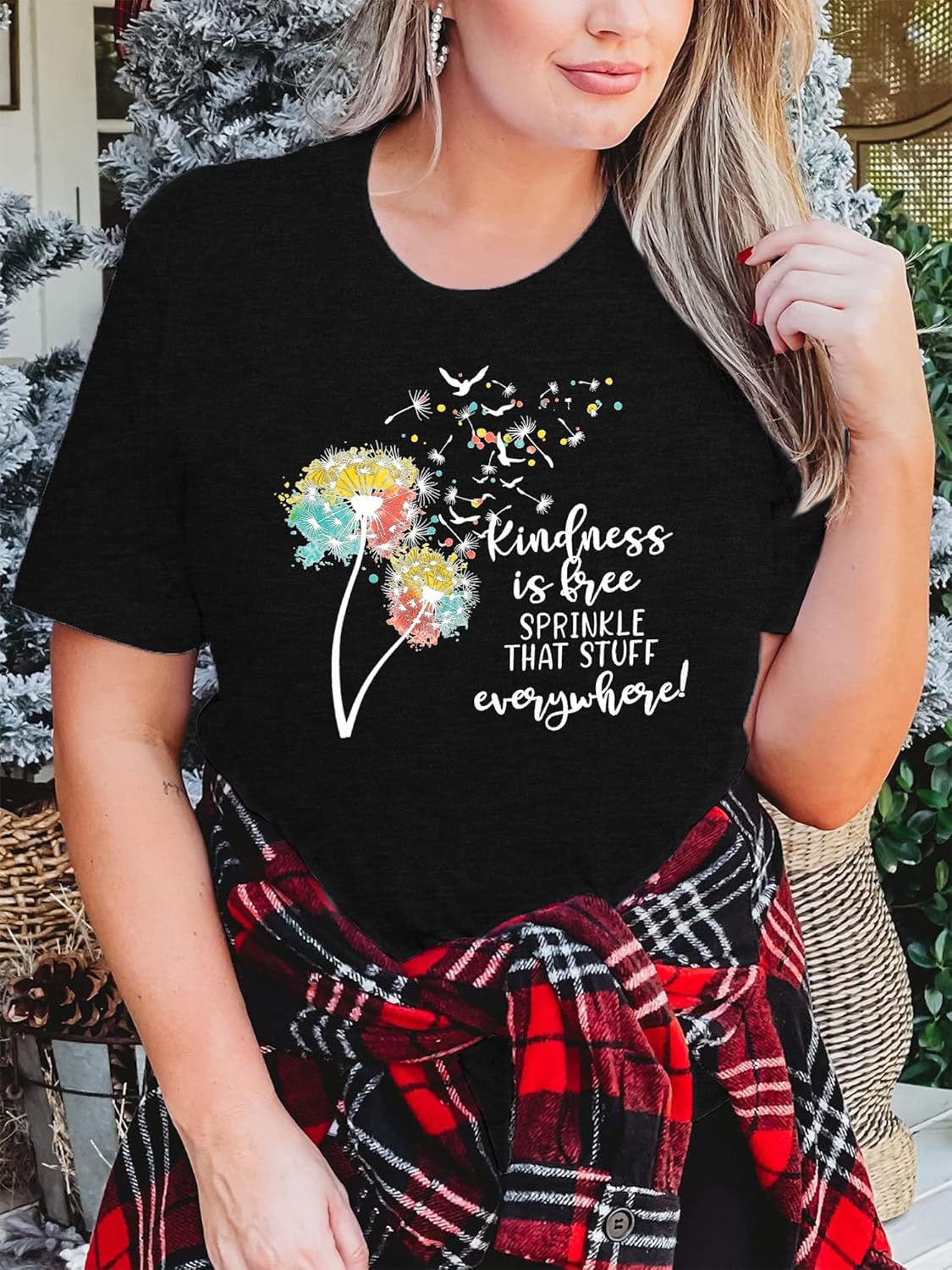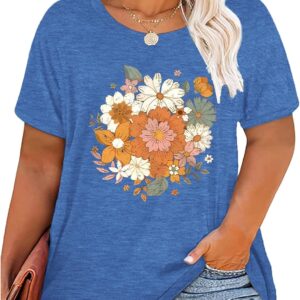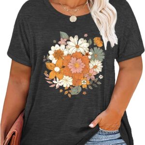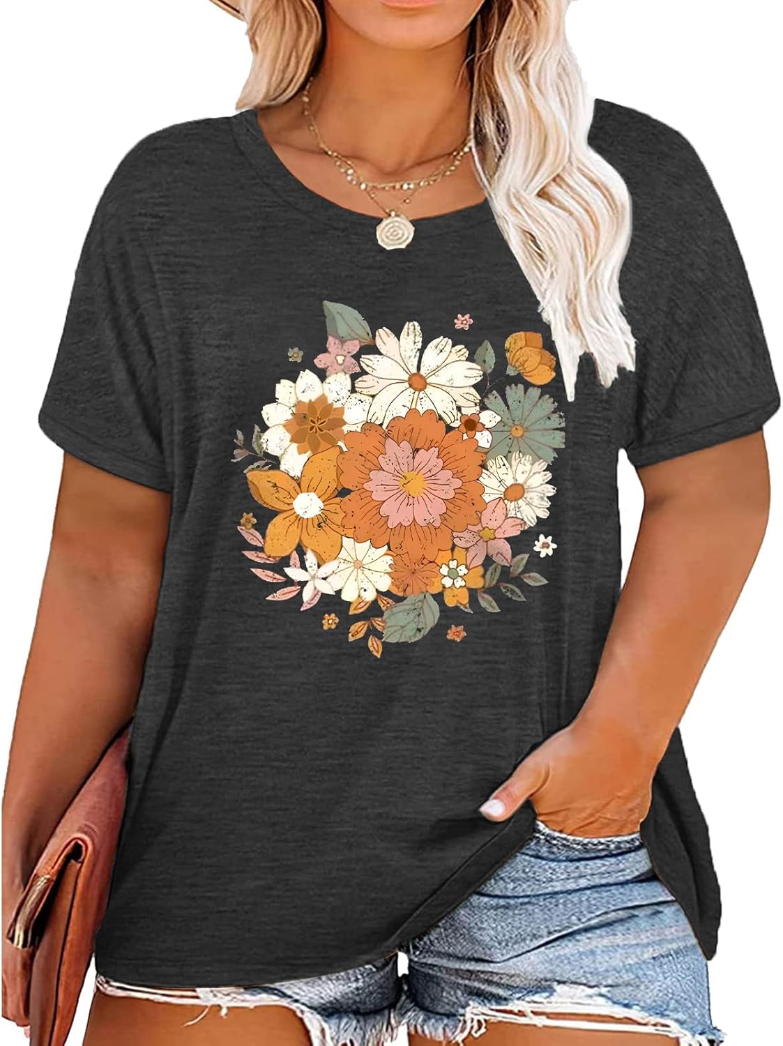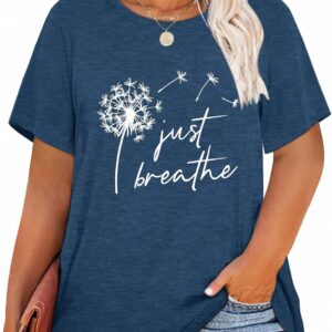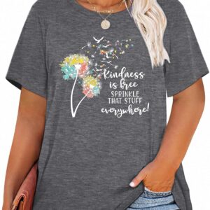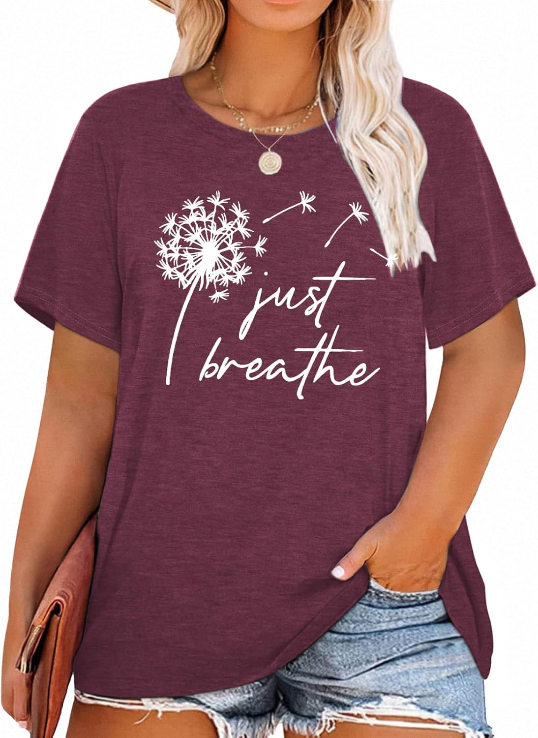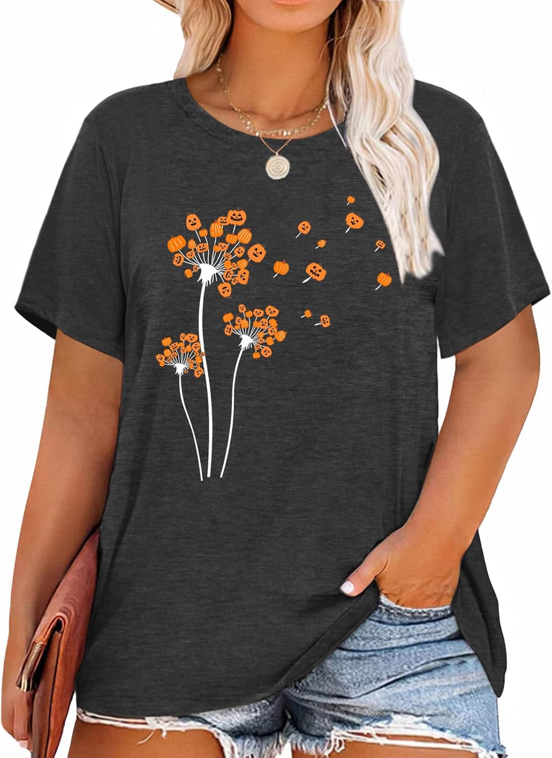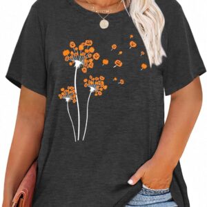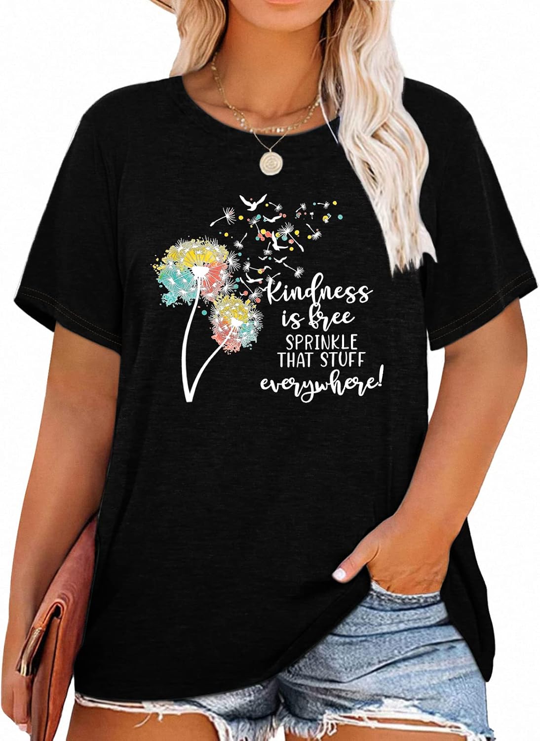 Womens Plus Size Dandelion Print Tshirt Cute Graphic Floral Tees Short Sleeve Summer Blessed Tee Tops