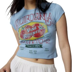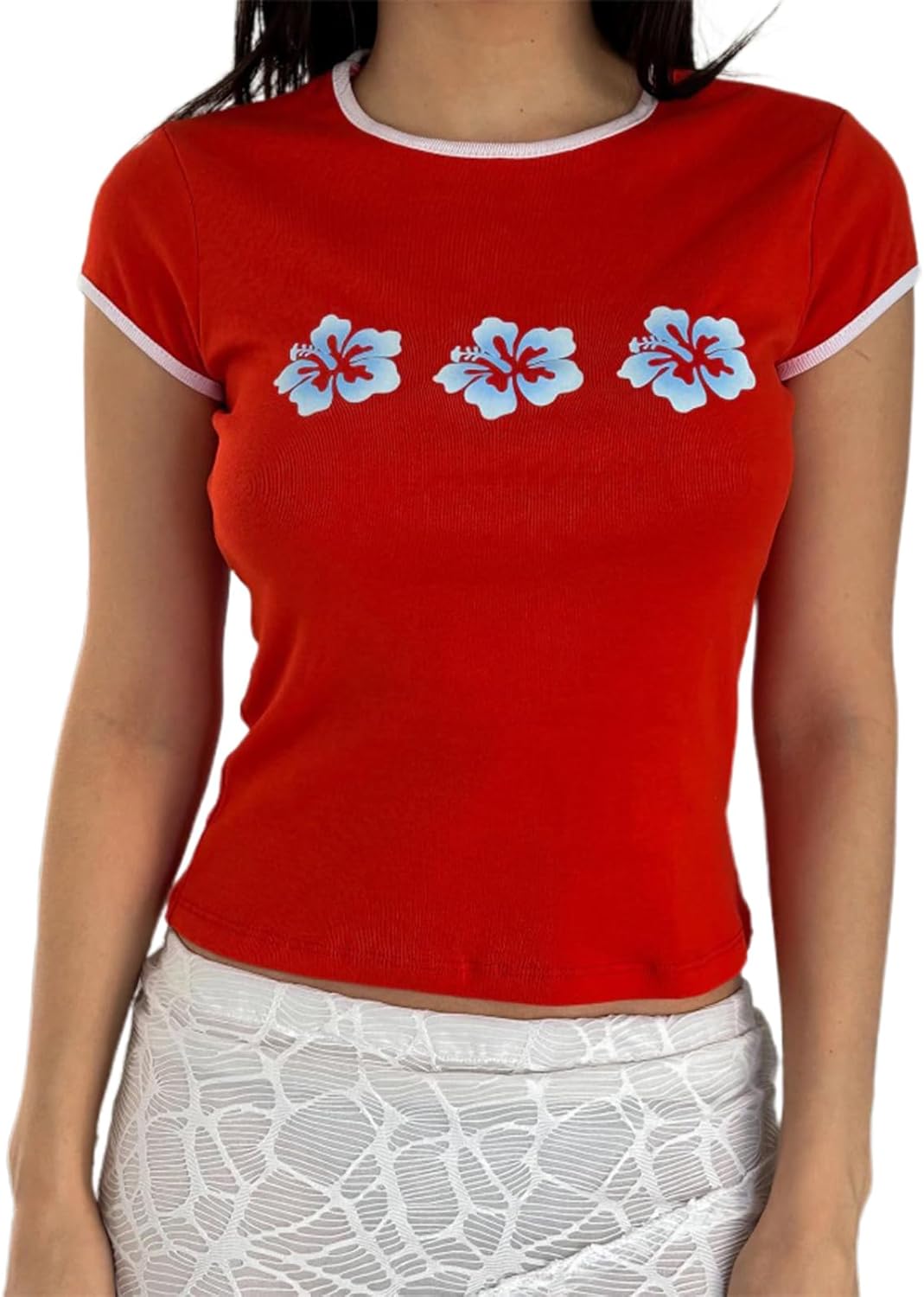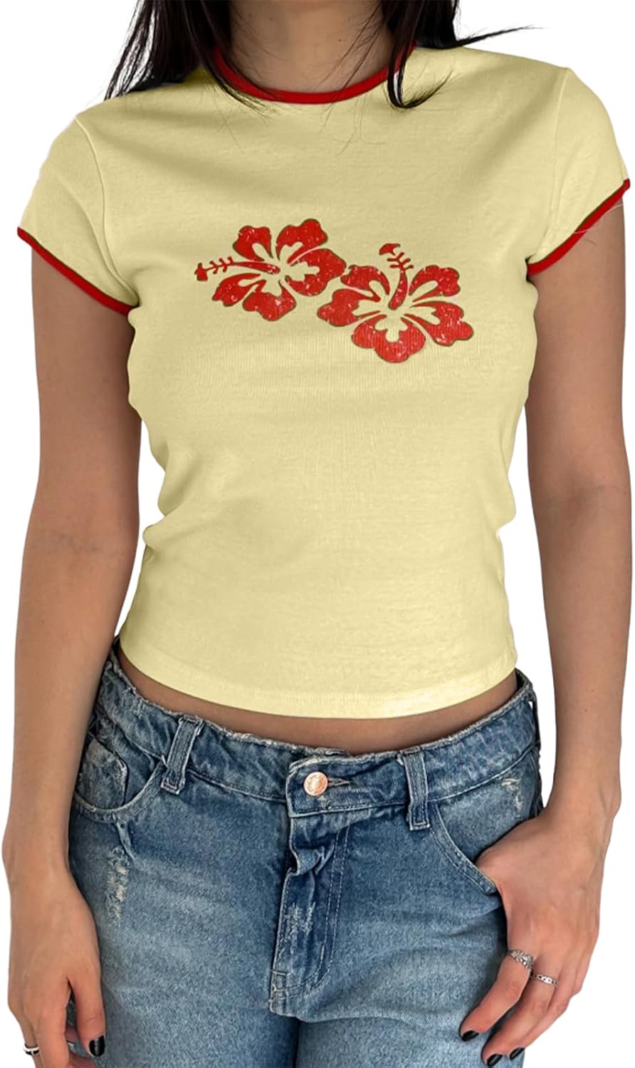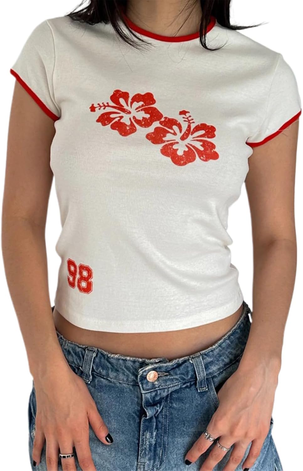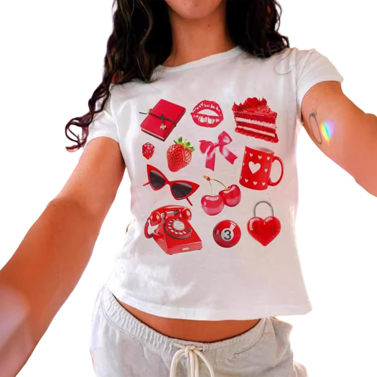 Y2k Graphic Baby Tees Women Teen Girl Fruit Print Crop Top Short Sleeve Slim Fit Vintage Aesthetic T Shirt Clothes