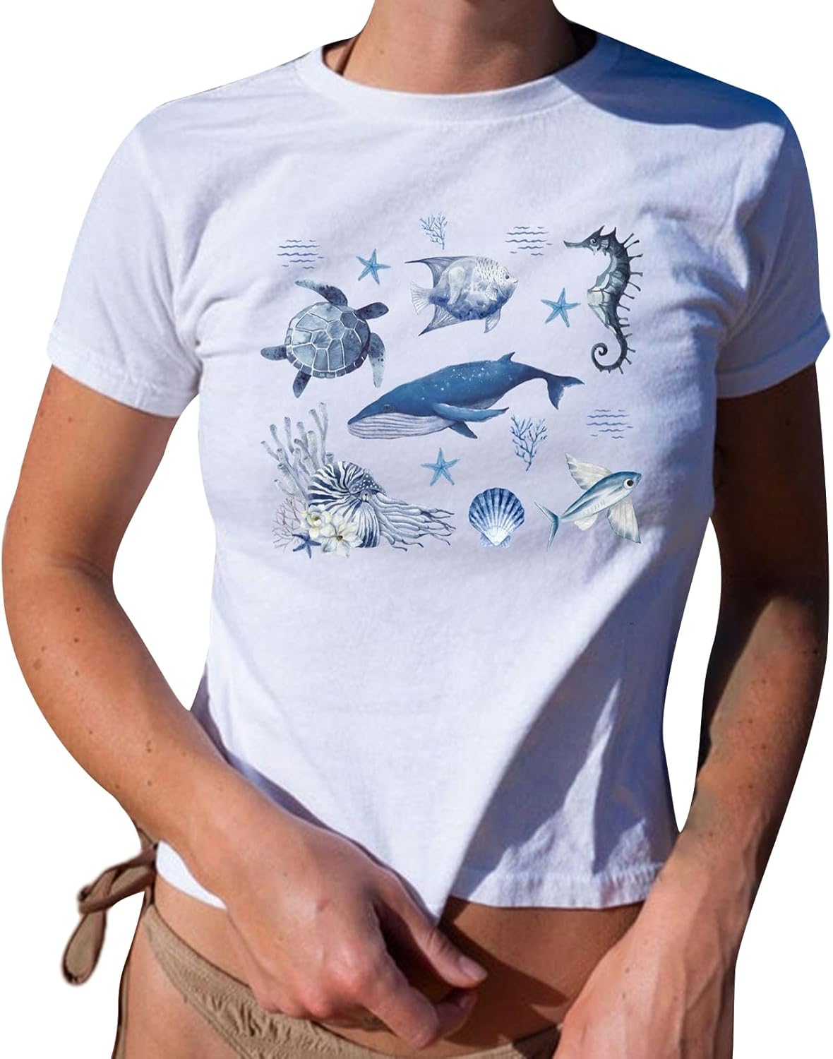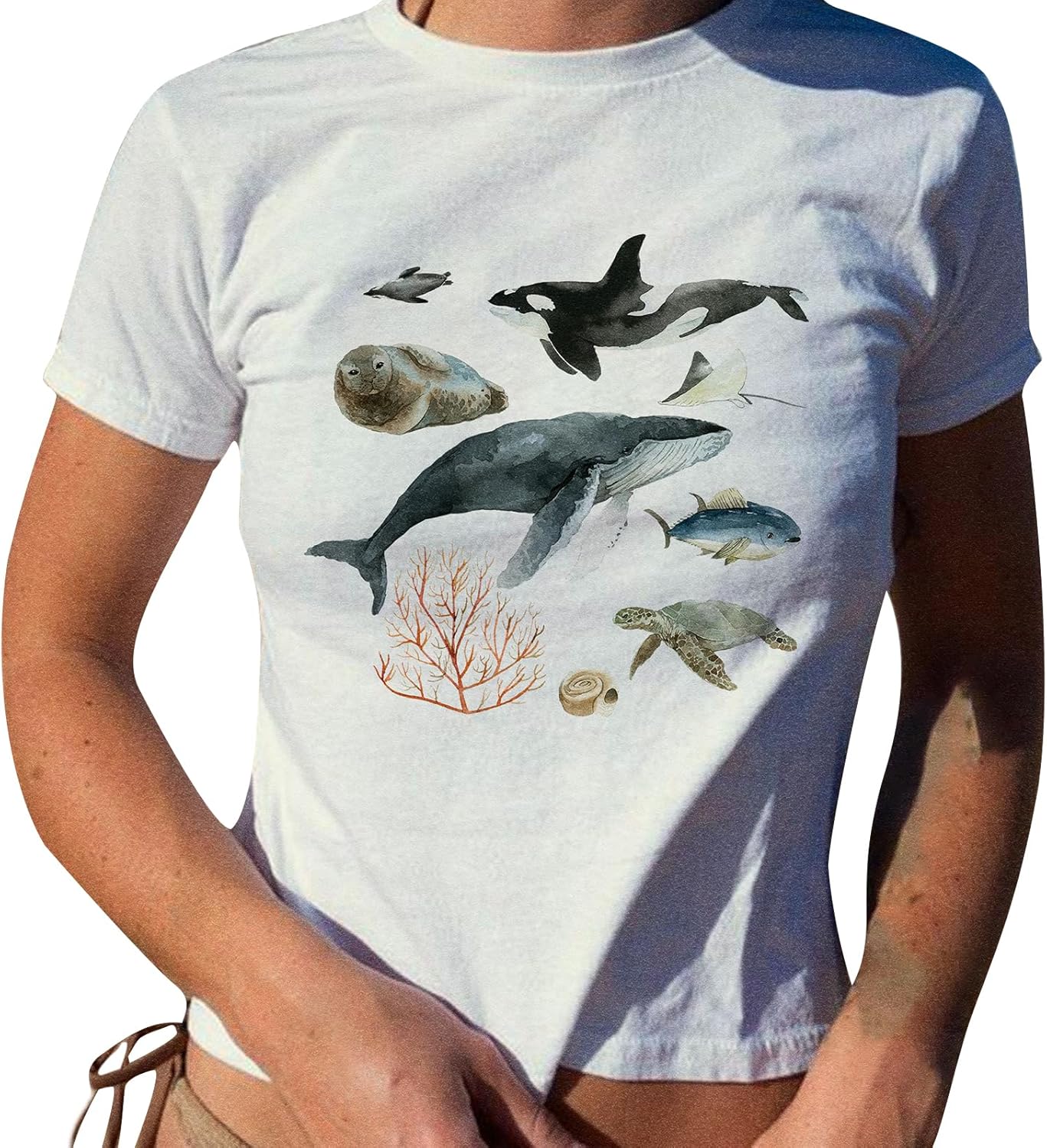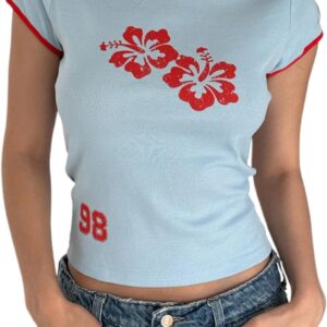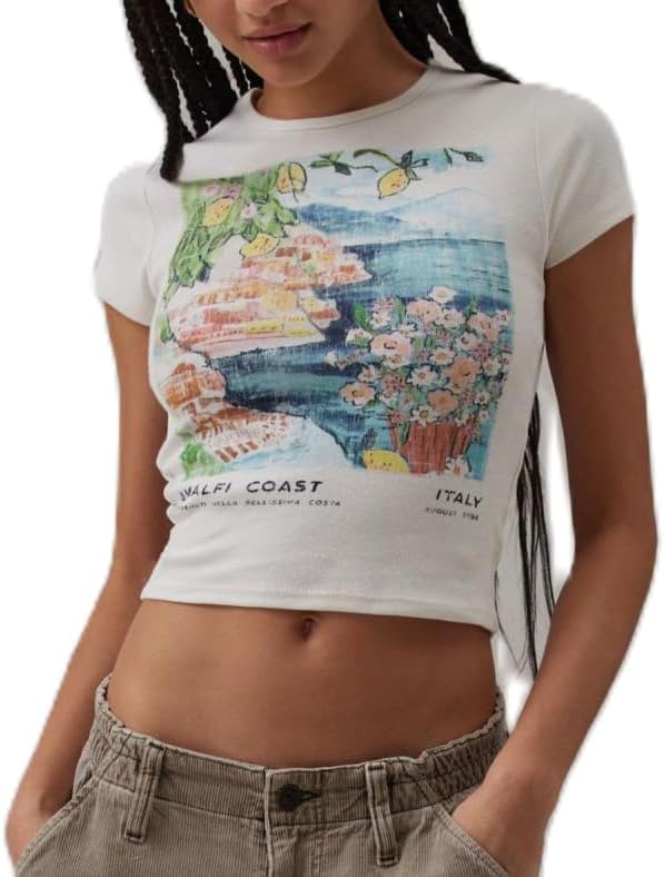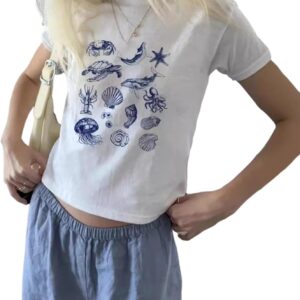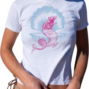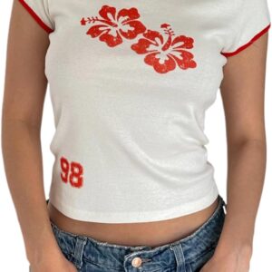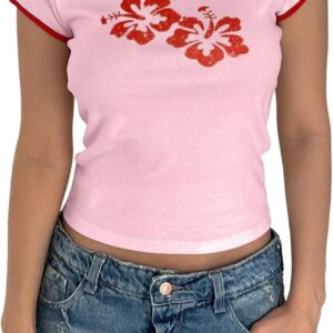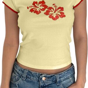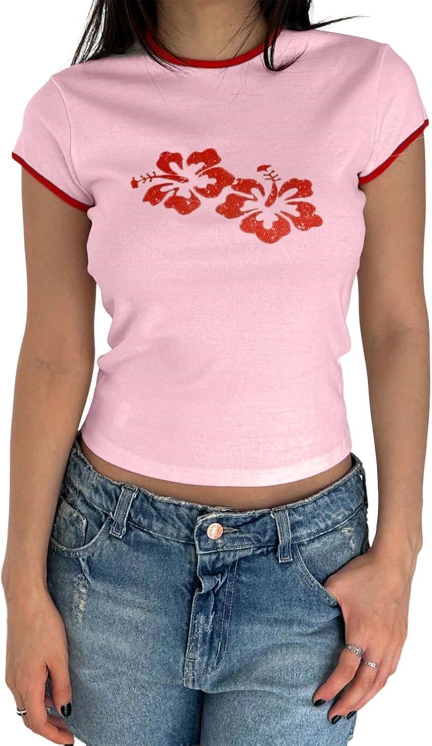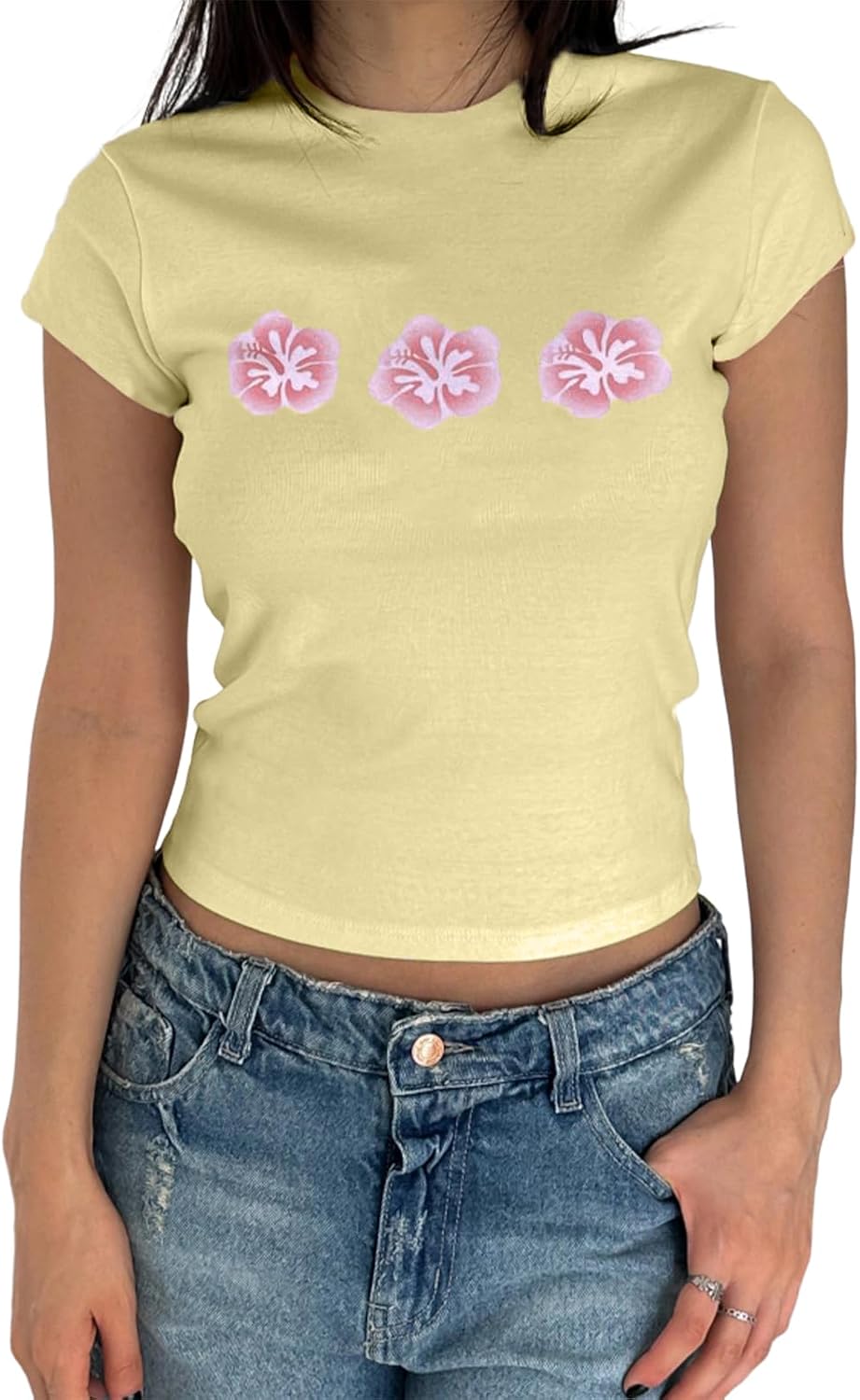 Y2k Graphic Baby Tees Women Teen Girl Fruit Print Crop Top Short Sleeve Slim Fit Vintage Aesthetic T Shirt Clothes