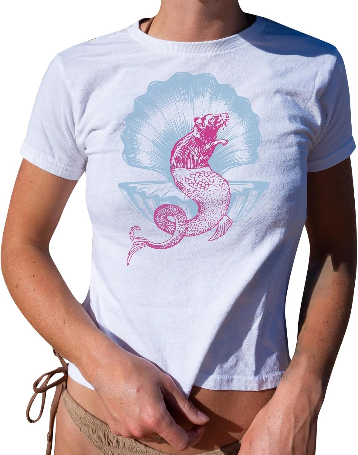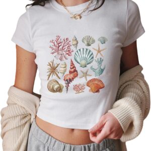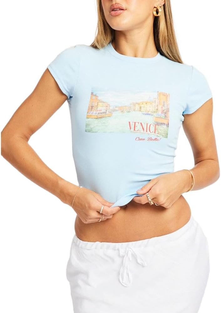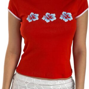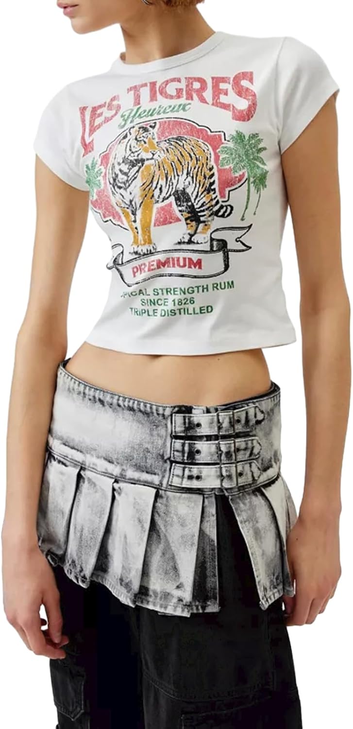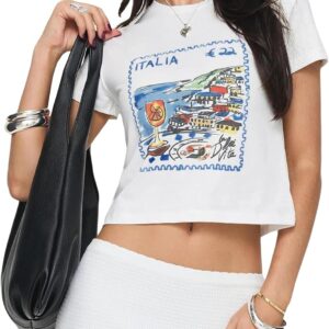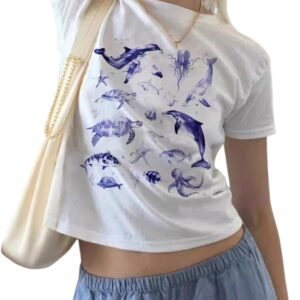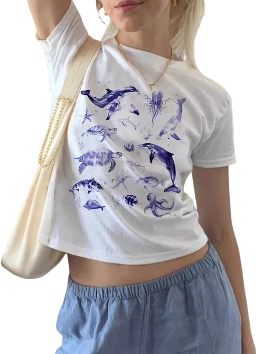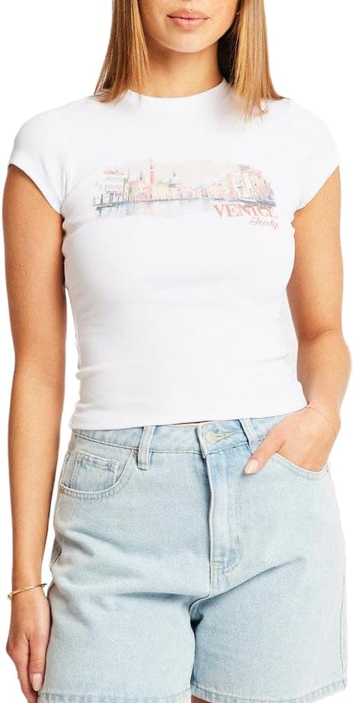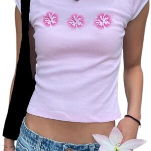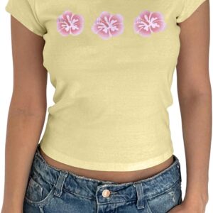 Y2k Graphic Baby Tees Women Teen Girl Fruit Print Crop Top Short Sleeve Slim Fit Vintage Aesthetic T Shirt Clothes