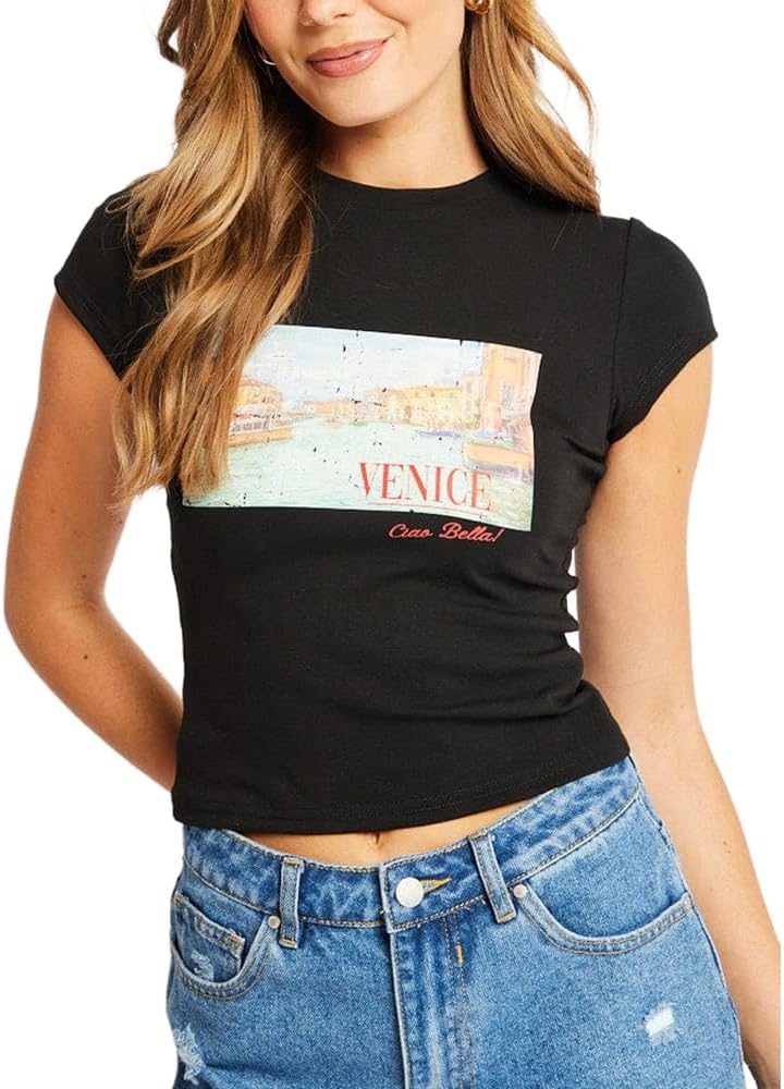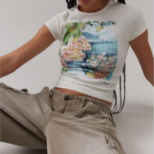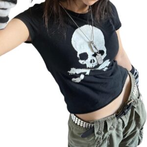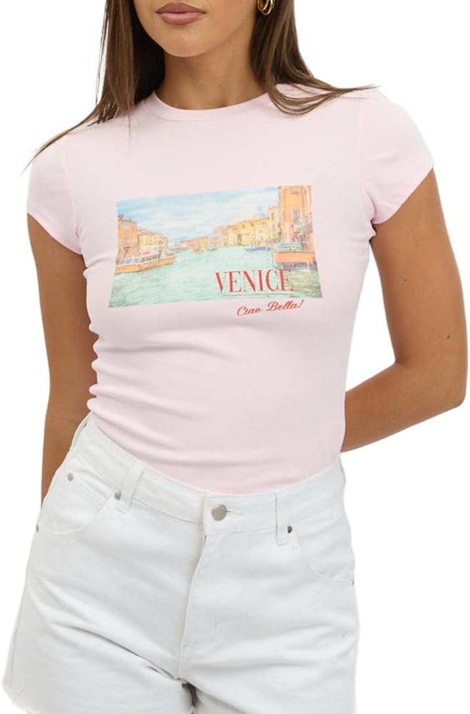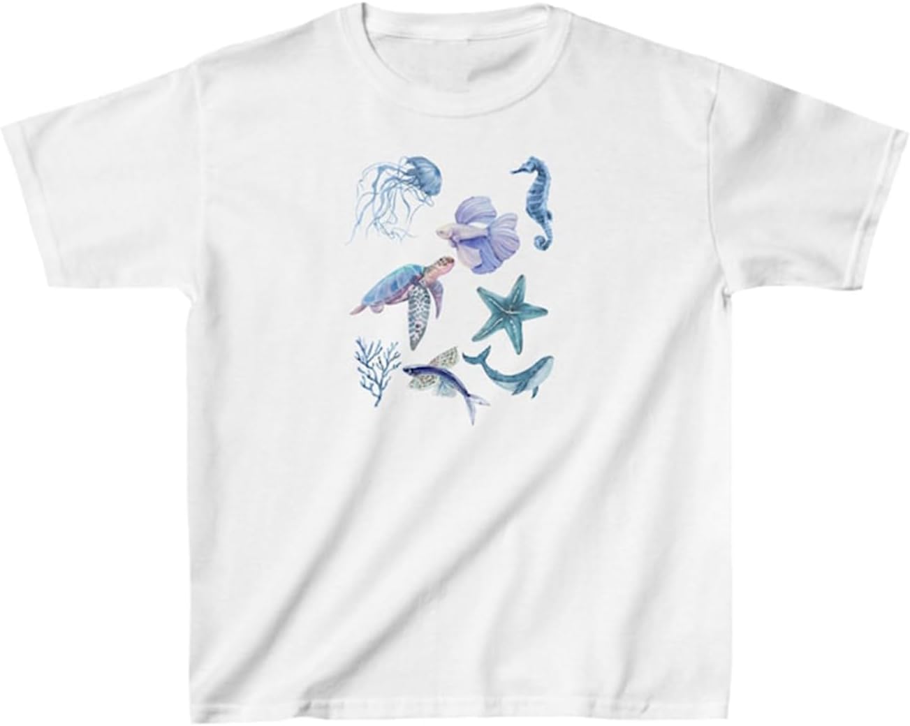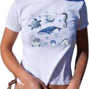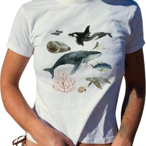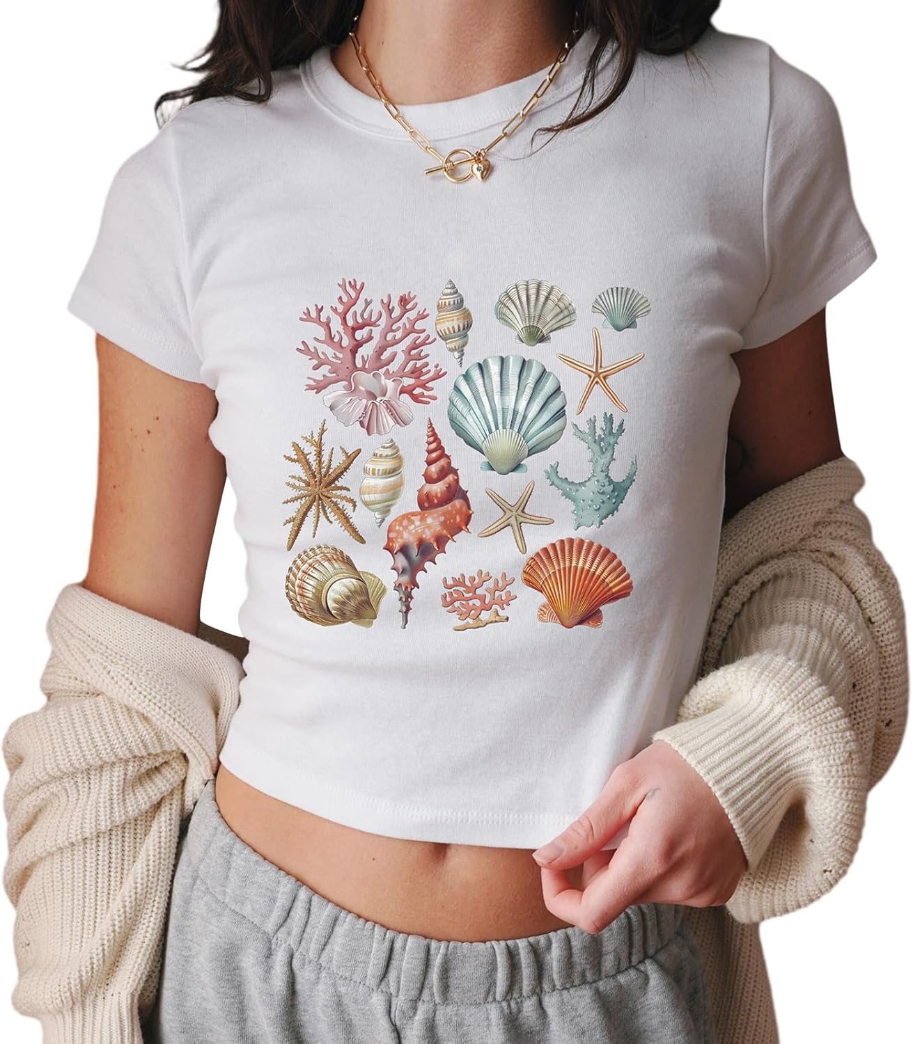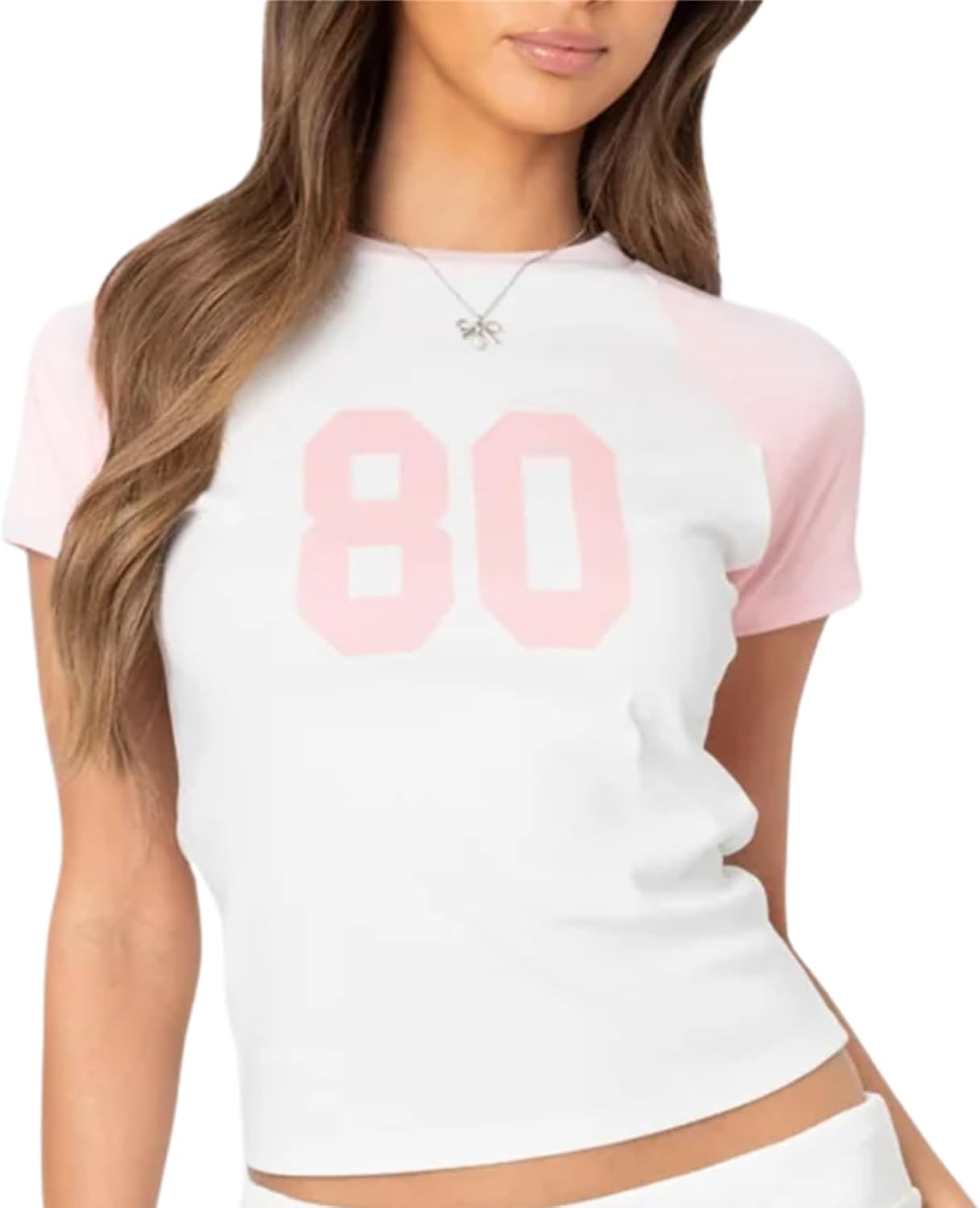 Y2k Graphic Baby Tees Women Teen Girl Fruit Print Crop Top Short Sleeve Slim Fit Vintage Aesthetic T Shirt Clothes