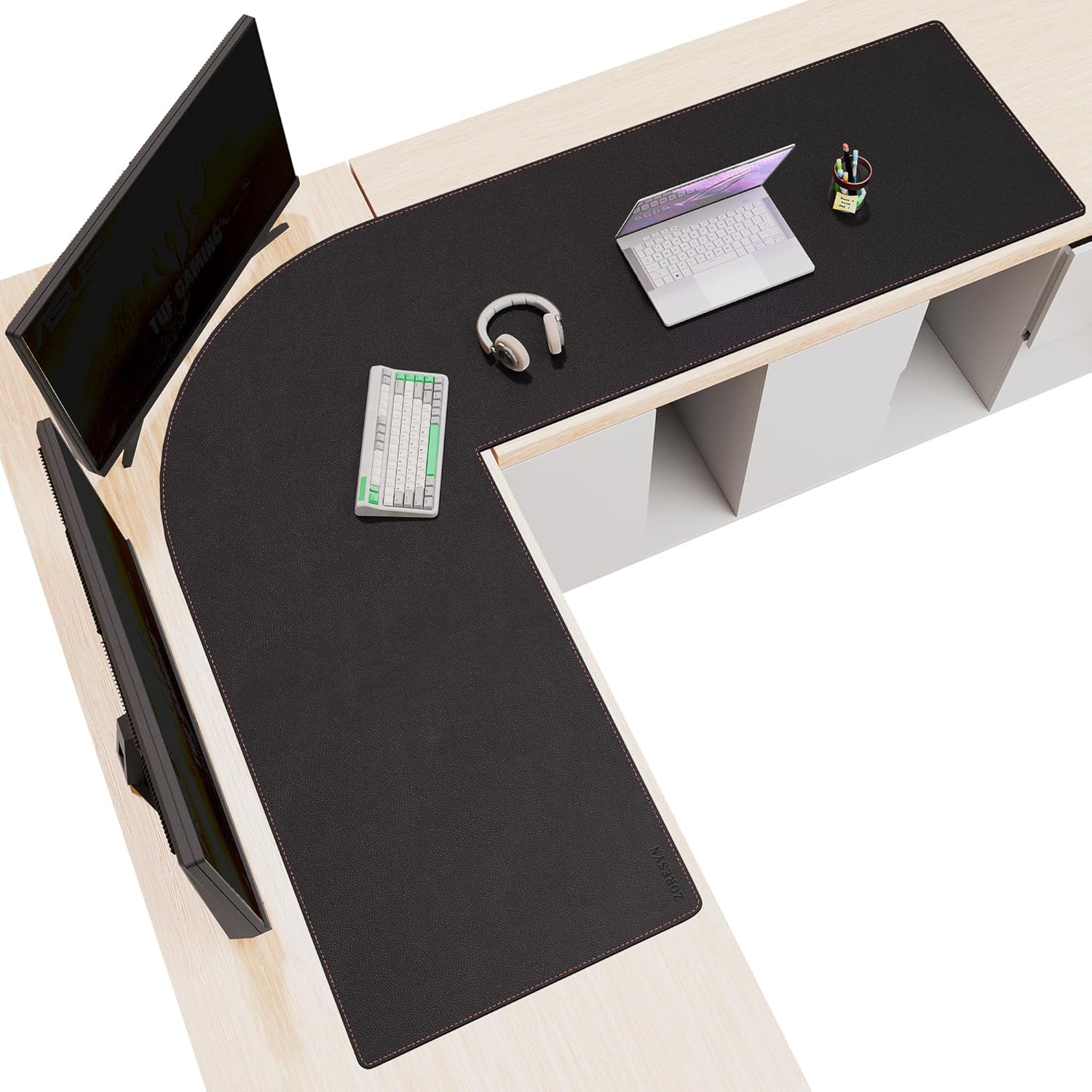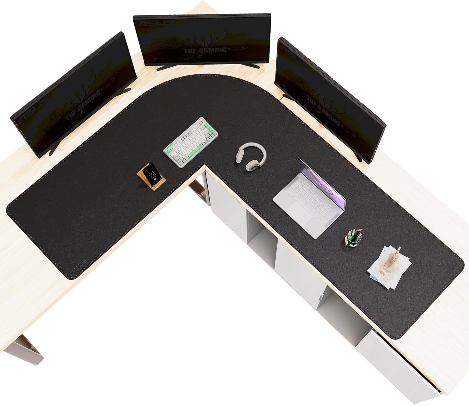 - [PROTECT DESKTOP & EASY CLEAN] Waterproof coating repels coffee, ink, and spills. Wipe stains instantly with a damp cloth – no residue or discoloration. Protect desks from scratches, heat marks, and scuffs with this large l-shaped desk pad.