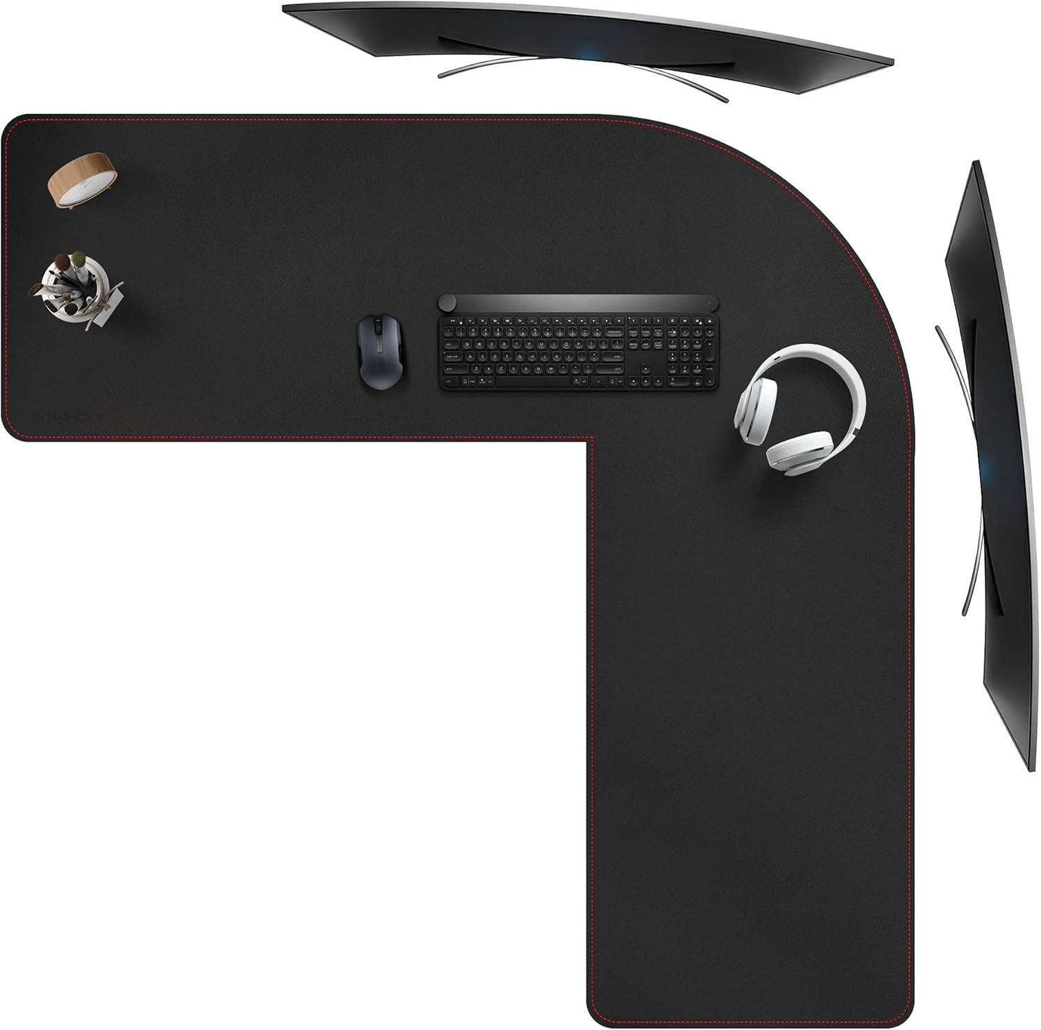 Office Pros: Keep cables, notebooks, and monitors organized on the large l-shaped desk pad, ideal for dual-screen productivity.